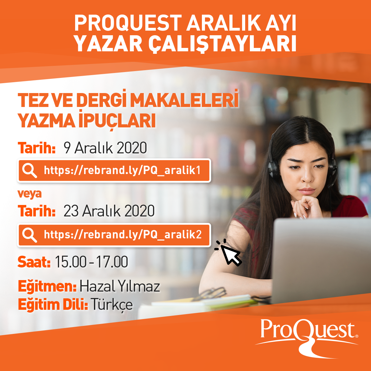 ProQuest Aralık Ayı Yazar Çalıştayları hakkında duyuru.
