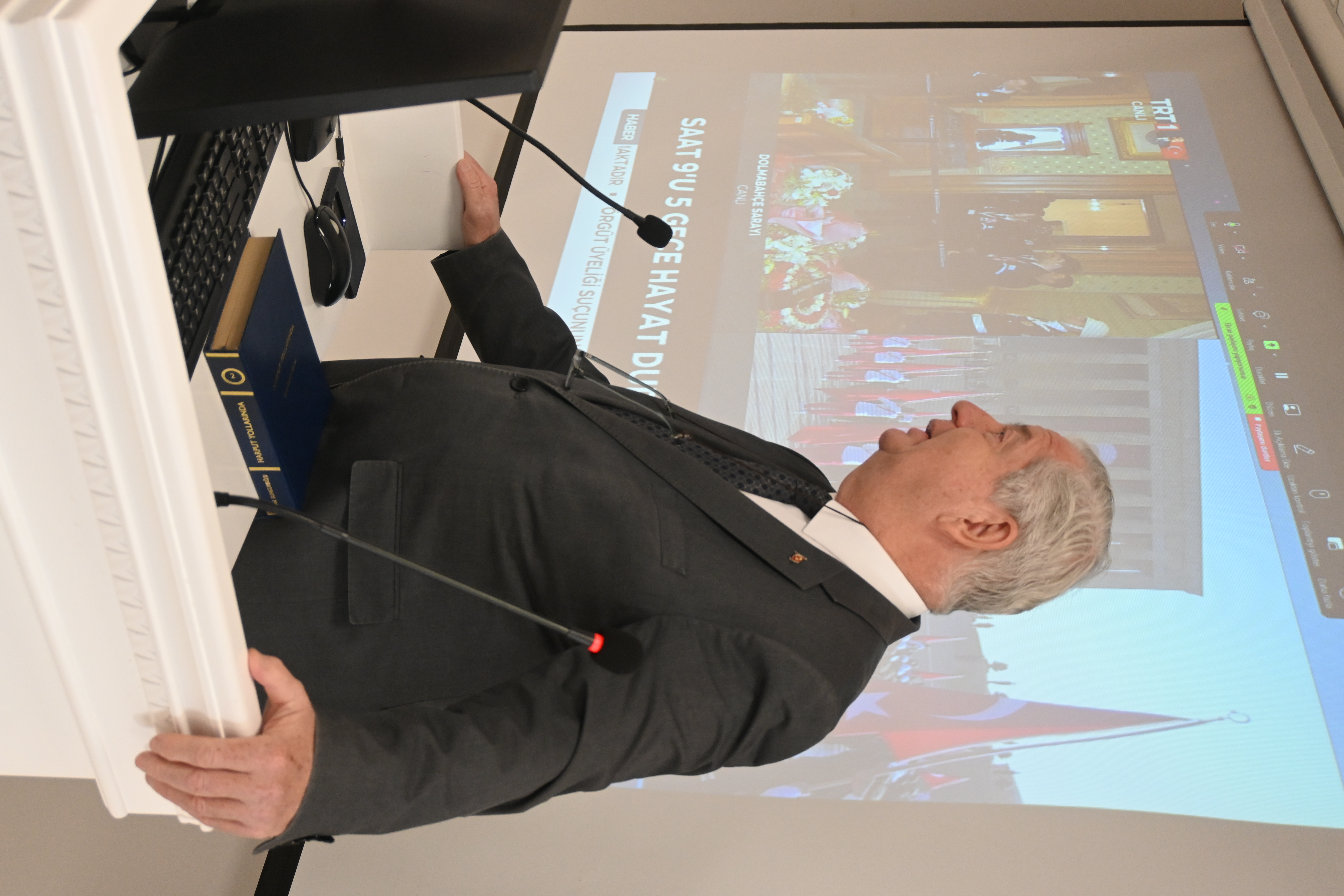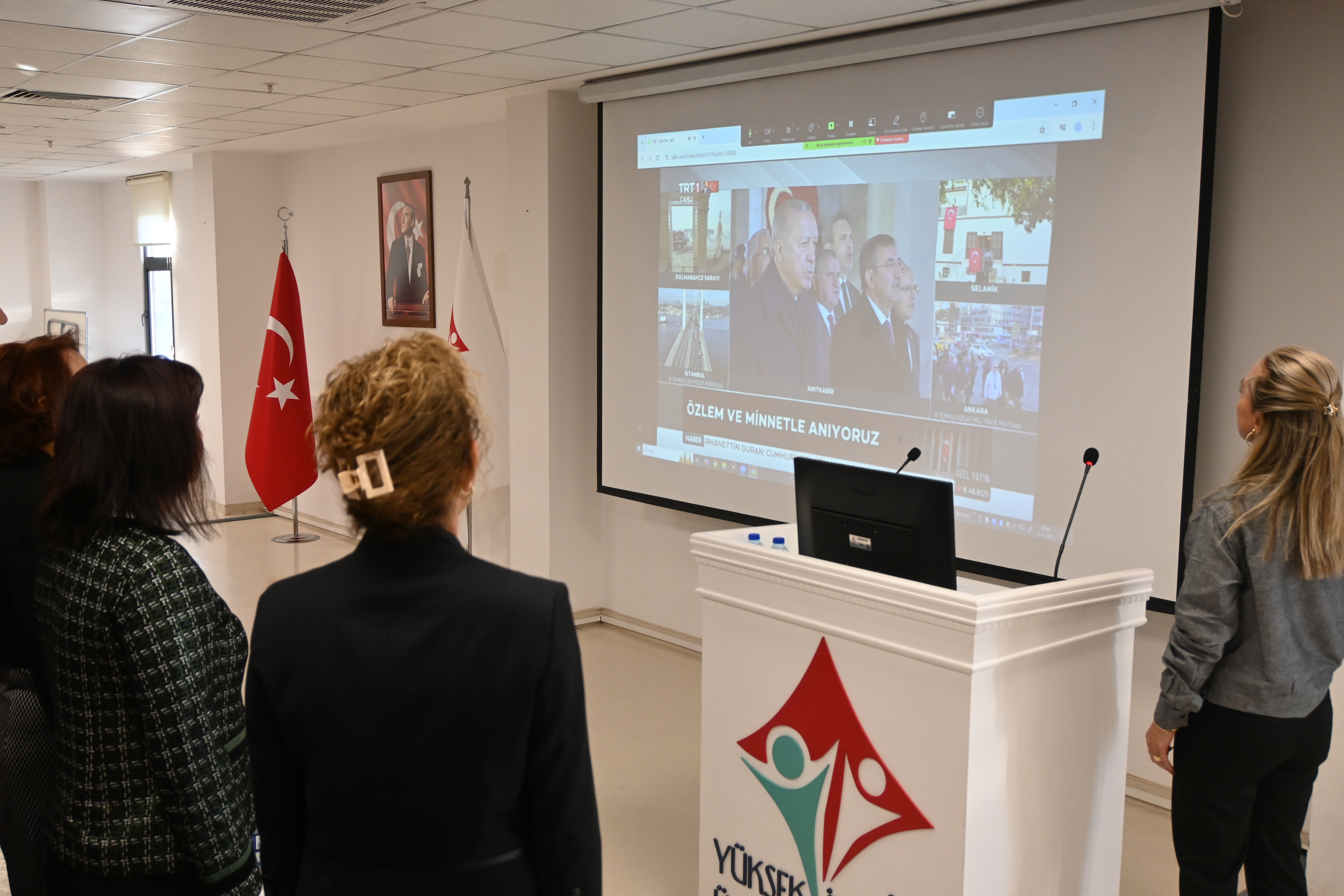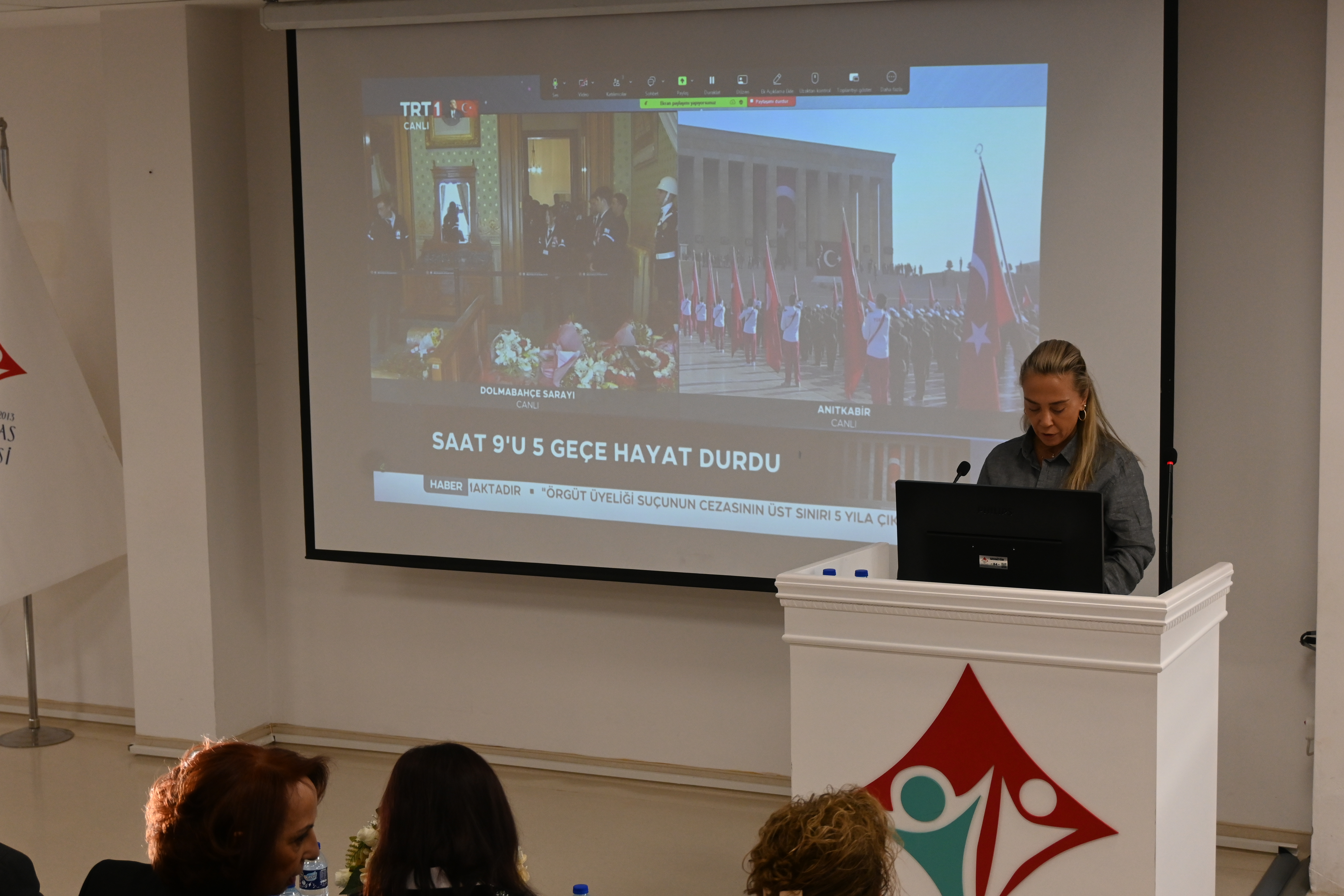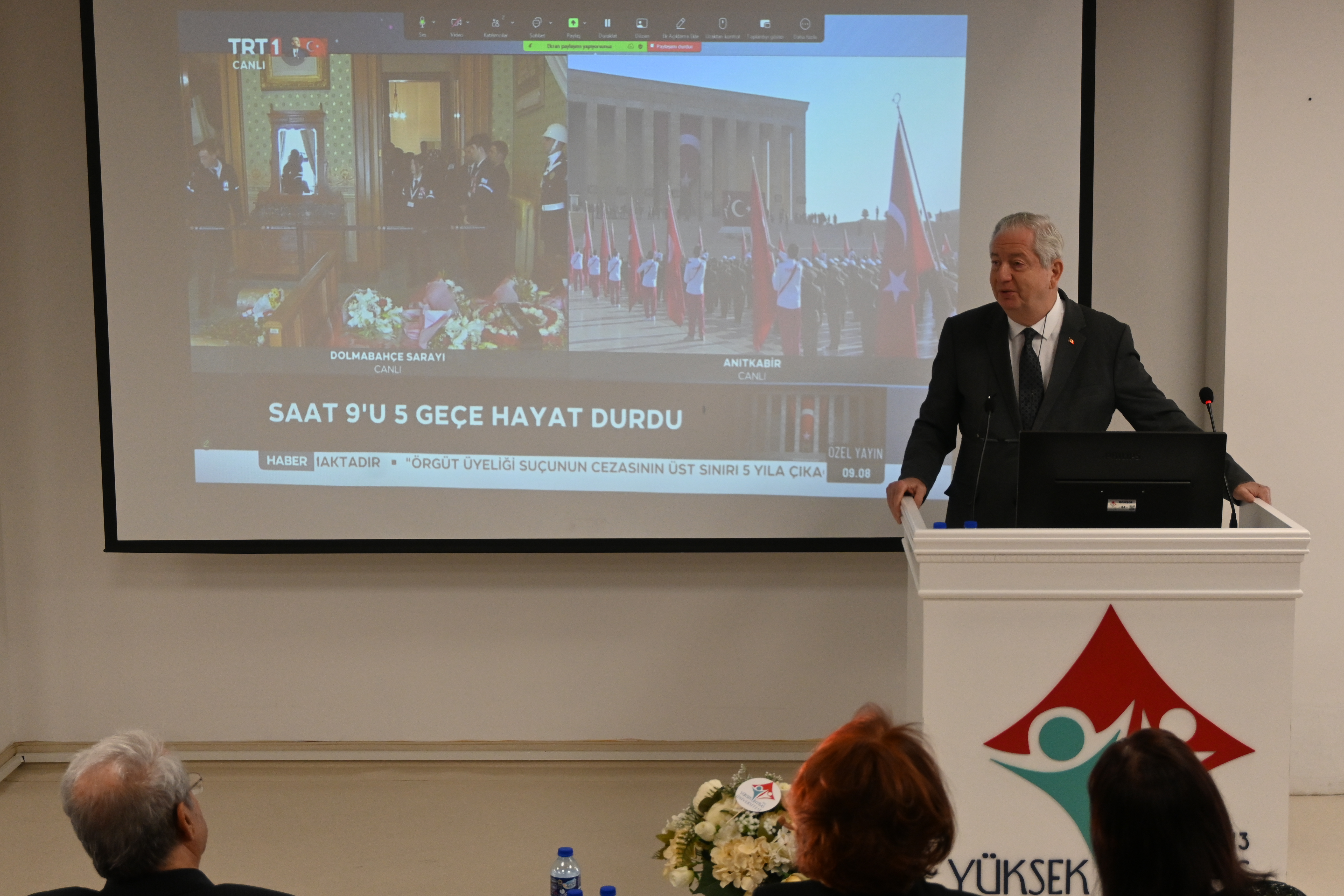 Üniversitemiz 100. Yıl Yerleşkesi Konferans Salonunda düzenlenen 10 Kasım Atatürk’ü Anma Programı, saygı duruşu ve İstiklal Marşı’nın okunmasının ardından Rektörümüz Prof. Dr. Kadirhan SUNGUROĞLU’nun açılış konuşmasıyla başladı. Program, Öğr. Gör. Dr. Kadir CEYLAN’ın “Atatürk Biyografileri” sunumuyla devam etti. Ulu Önder Mustafa Kemal Atatürk, sevgi, saygı ve özlemle anıldı.