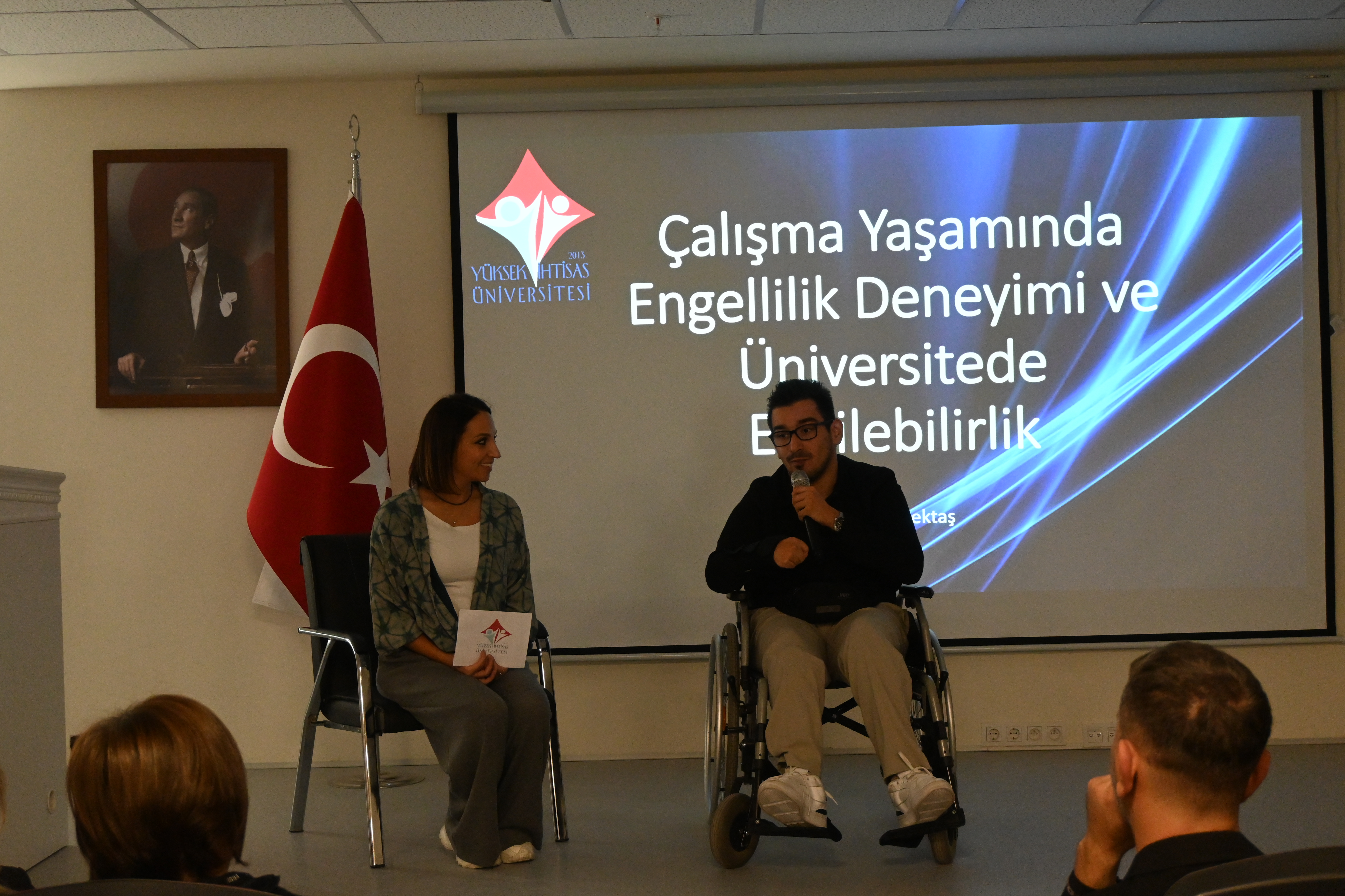 Üniversitemizin engelli çalışan temsilcisi Yusuf Bera PEKTAŞ tarafından “Çalışma Yaşamında Engellilik Deneyimi ve Üniversitede Erişilebilirlik”,
