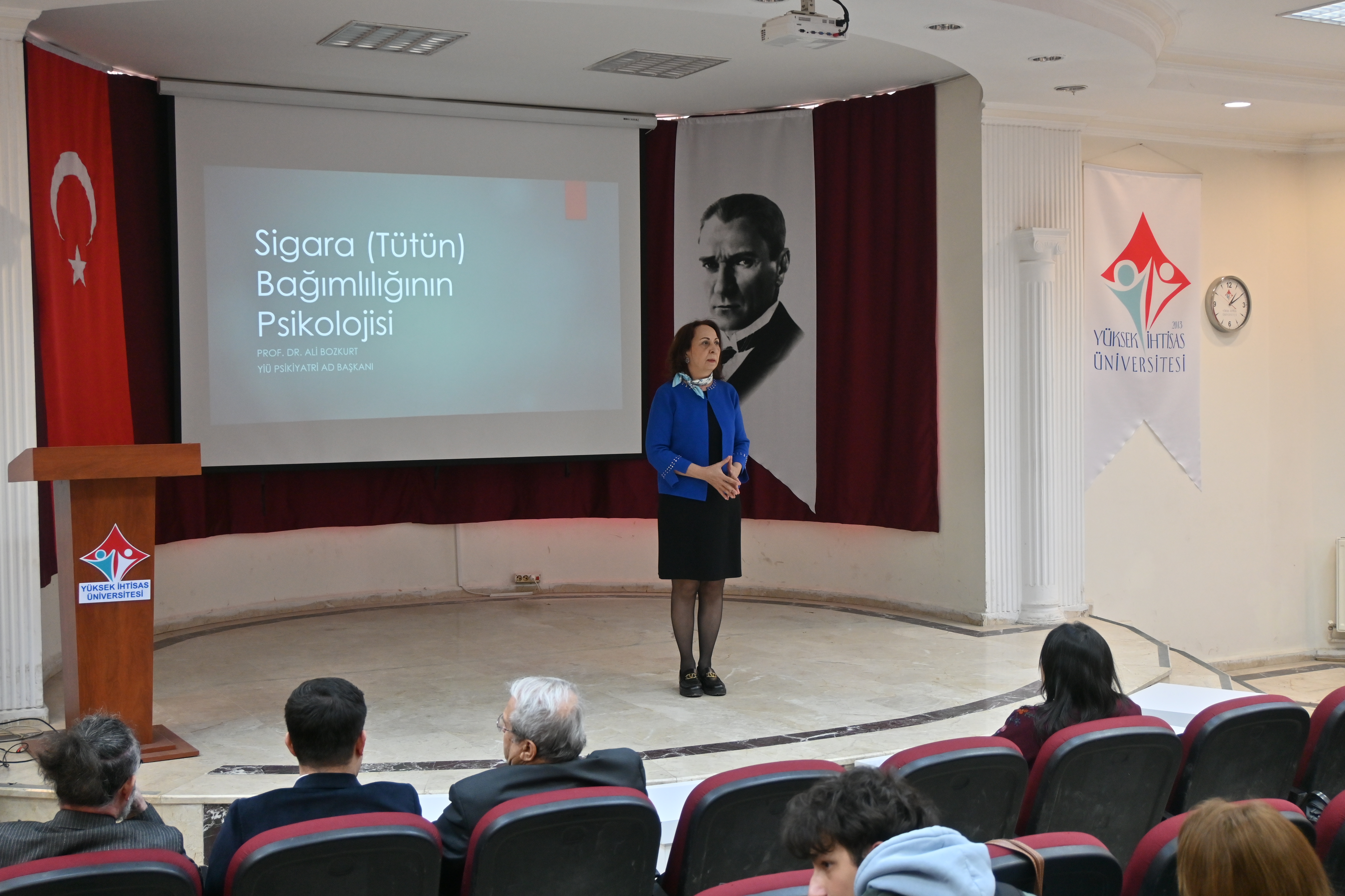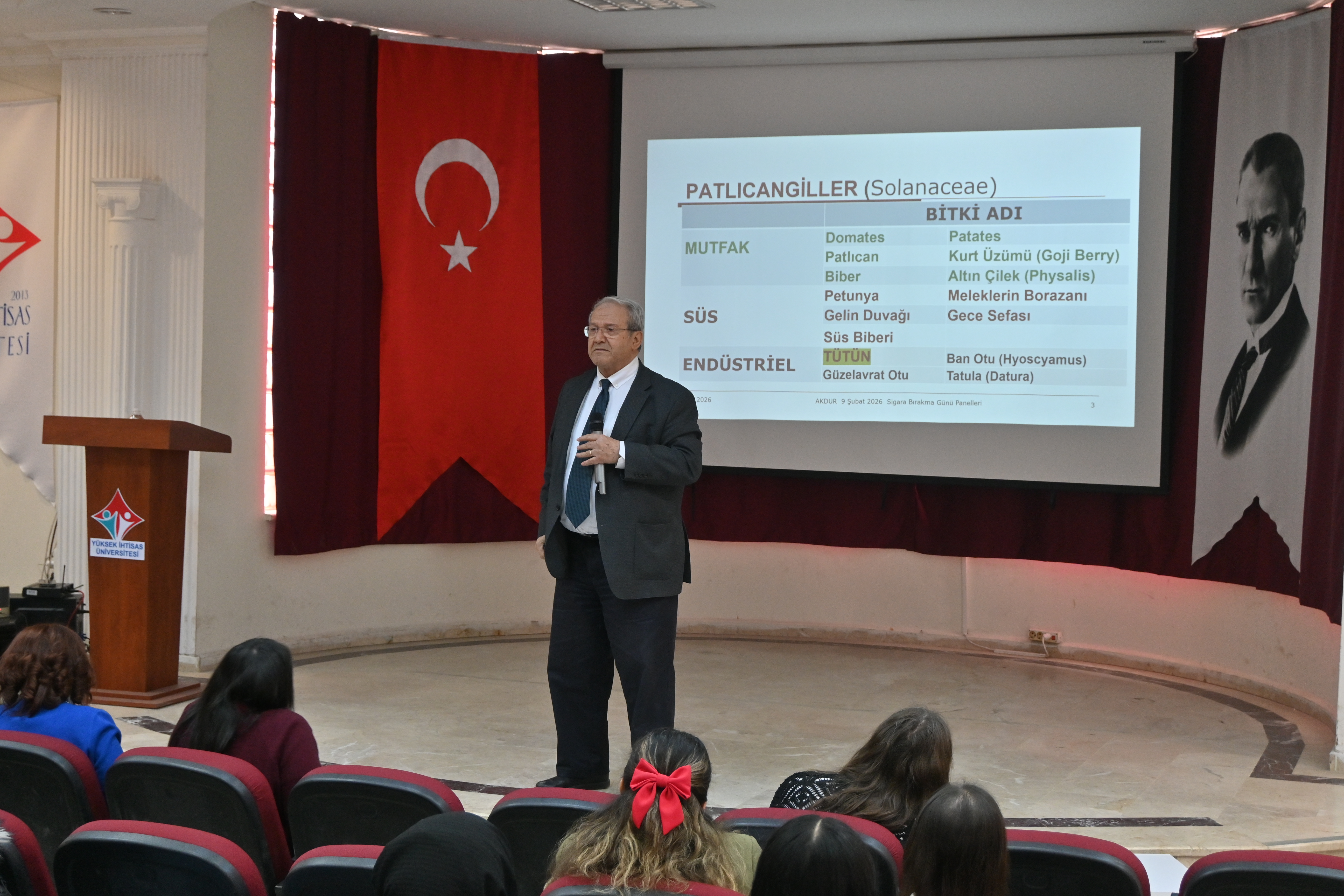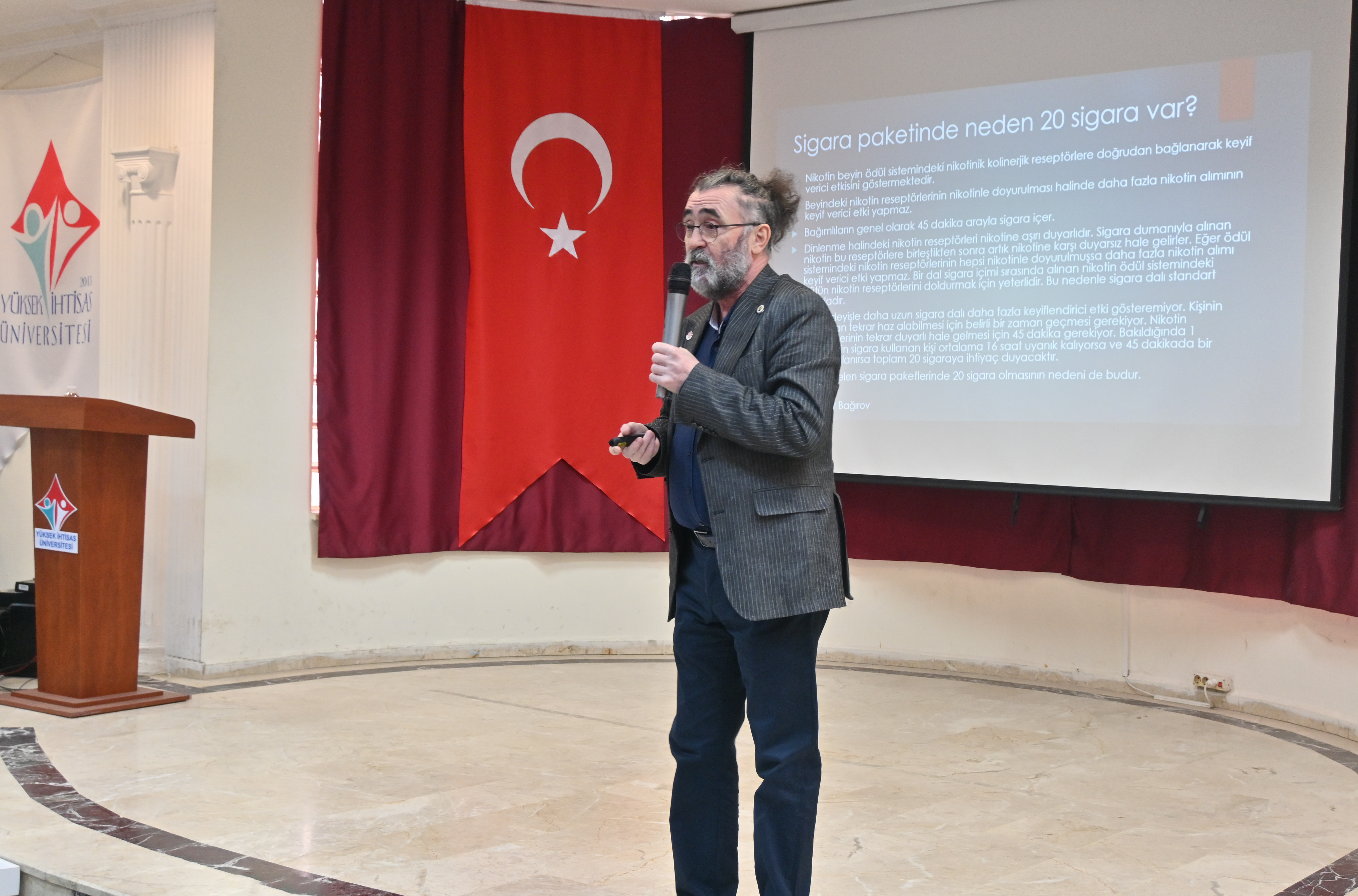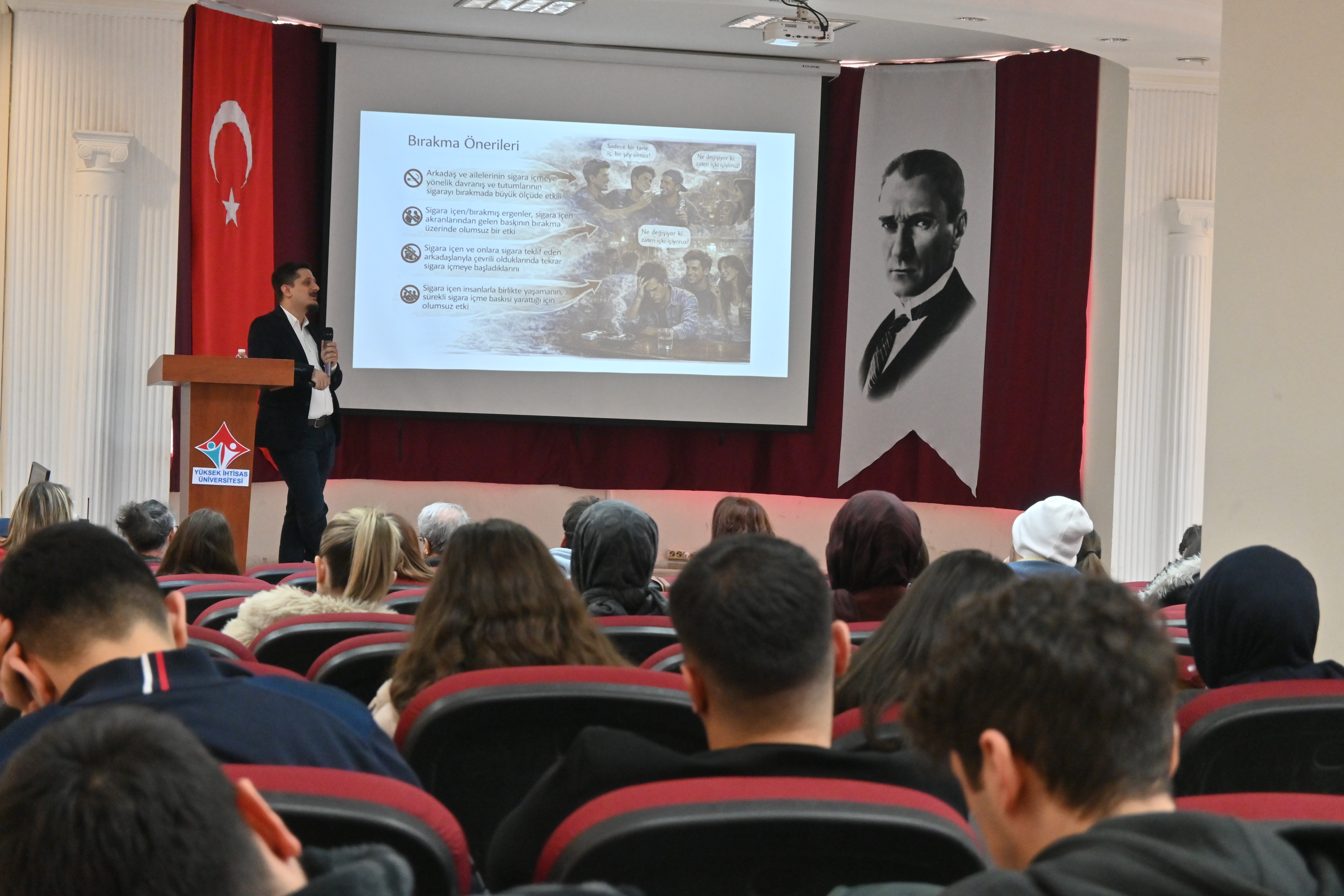 Seminerde, Sigara Bağımlılığı Psikolojisi başlığıyla Prof. Dr. Ali BOZKURT, sigara bağımlılığının psikolojik boyutlarını ve bağımlılıkla mücadelede farkındalığın önemini ele aldı. Tütün Kullananlarda Erken Semptomlar ve Bırakma Önerileri konusunda Dr. Öğr. Üyesi Umut DİLEGELEn, tütün kullanımının erken dönemde yol açtığı sağlık sorunlarını ve bırakma sürecinde uygulanabilecek yöntemleri katılımcılarla paylaştı. Tütün ve Tütünle Mücadele Tarihi başlıklı sunumunda ise Prof. Dr. Recep AKDUR, dünyada ve Türkiye’de tütünle mücadele sürecine dair önemli bilgiler aktardı.