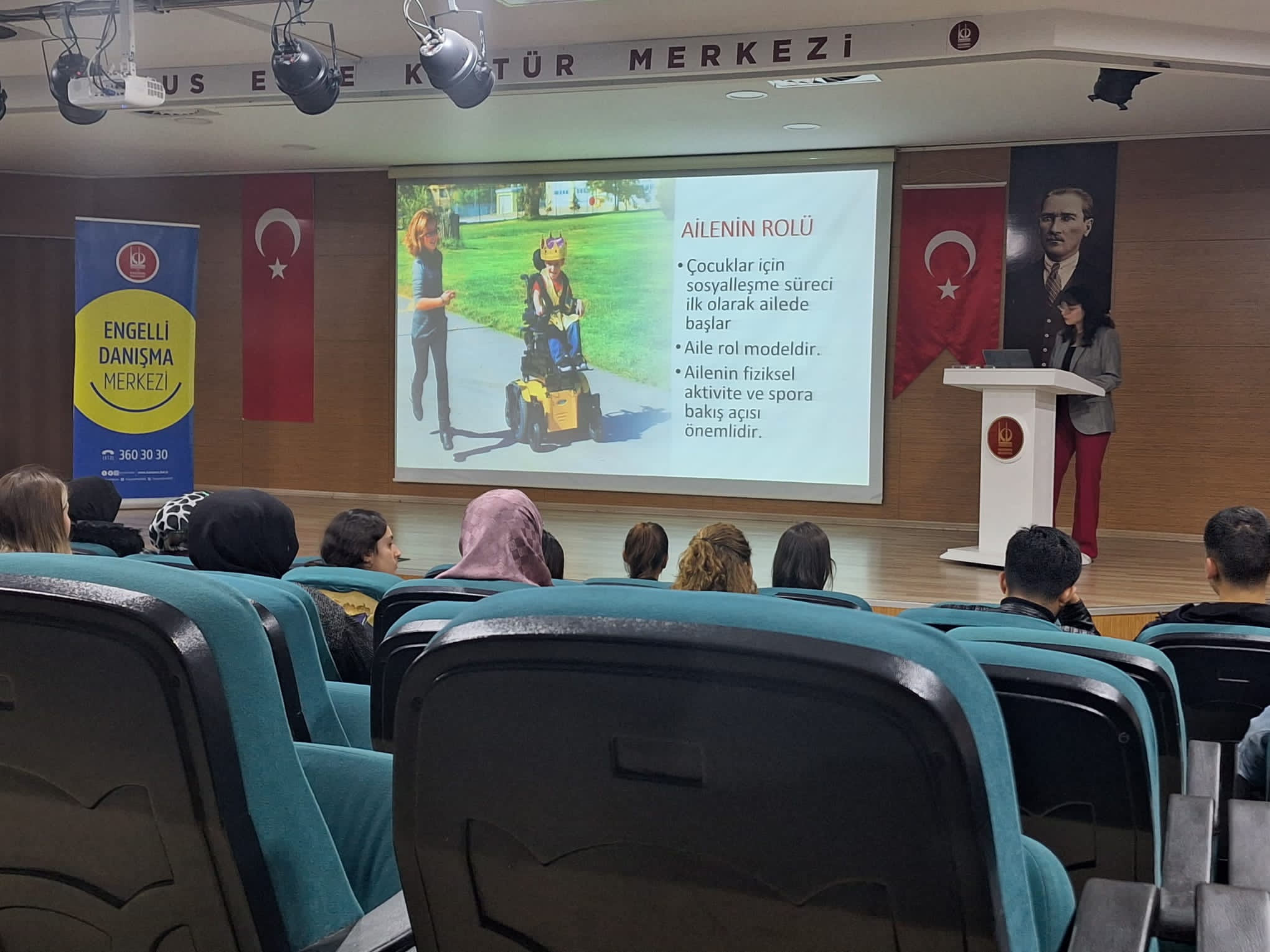 Konferans engelli bireylerde fiziksel aktivitenin önemi, engelli bireylerin yapabileceği sporlar, Türkiye'nin engelli sporlarda başarıları ve engelli bireylerin temel hak ve hürriyetlerinin konuşulduğu 2 ayrı oturumda tamamlandı. Eğitim sonunda katılımcıların merak ettiği sorular yanıtlandı.