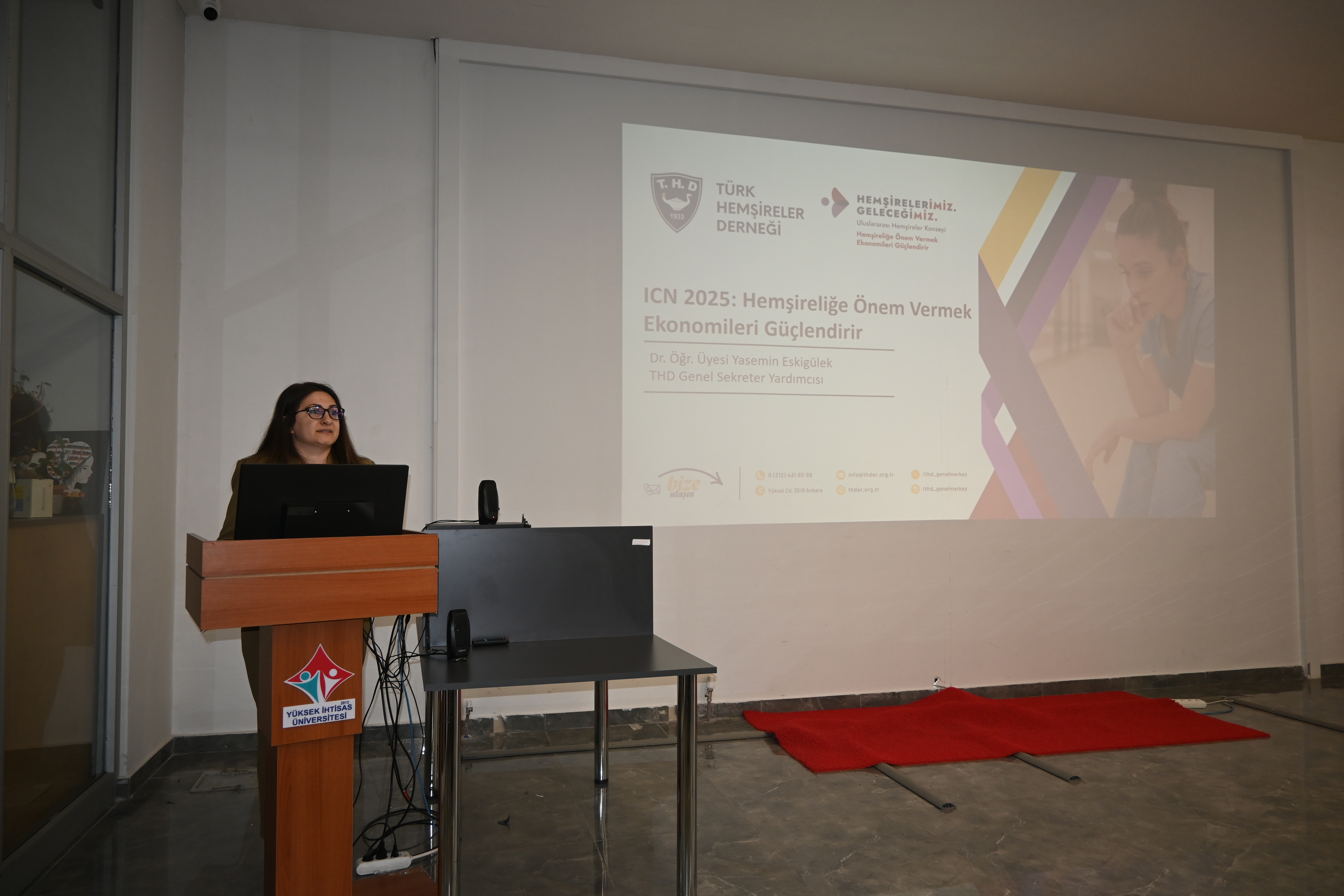 Başkent Üniversitesi İç Hastalıkları Hemşireliği Anabilim Dalı’ndan Dr. Öğr. Üyesi Yasemin ESKİGÜLEK, “Bakımın Ekonomik Gücü” başlıklı sunumunu gerçekleştirdi. Ardından, Hacettepe Üniversitesi Hemşirelikte Yönetim Anabilim Dalı’ndan Dr. Öğr. Üyesi Seher BAŞARAN AÇIL, “Bakımın Ekonomik Gücü Perspektifinde Hemşirelik Hizmetleri Yönetiminin Geleceği” konusuna değindi. Yüksek İhtisas Üniversitesi İç Hastalıkları Hemşireliği Anabilim Dalı’ndan Prof. Dr. Sabire YURTSEVER ise “Hemşirelik Bakımında Evrensel Yaşam Enerjisi” konulu sunumuyla etkinliğe katkı sağladı.