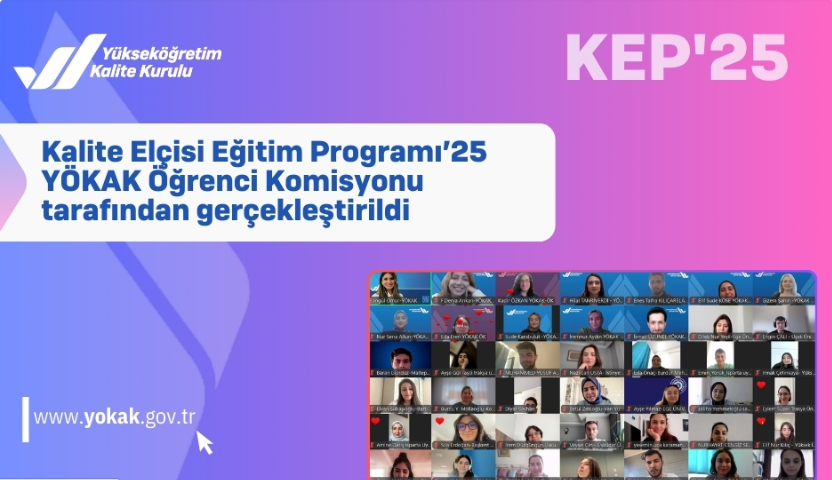 Yükseköğretim Kalite Kurulu (YÖKAK) Öğrenci Komisyonu tarafından, öğrencilerin yükseköğretimde kalite güvencesi sistemine katılımını sağlamak, kalite kültürünü yaygınlaştırmak ve kalite güvencesi alanında yetkinlik kazandırmak amacıyla düzenlediği “Kalite Elçisi Eğitim Programının (KEP) ilki 12-13 Mayıs 2025, ikincisi ise 21-22 Mayıs 2025 tarihlerinde gerçekleşti.