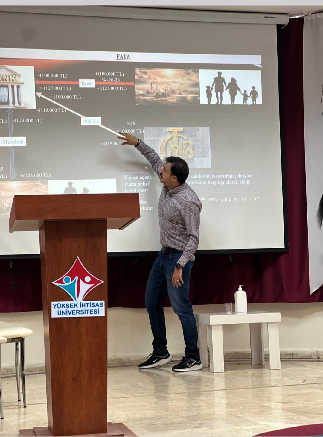 Sağlık Hizmetleri Meslek Yüksekoklu ve Meslek Yüksekokulunun birlikte düzenlediği seminerler kapsamında Tıbbi Tanıtım ve Pazarlama Program Başkanı Öğr. Gör. Esat SAYGI "Kur, Faiz, Enflasyon Üçgeninde Para Harekatı" konulu seminer gerçekleştirdi.