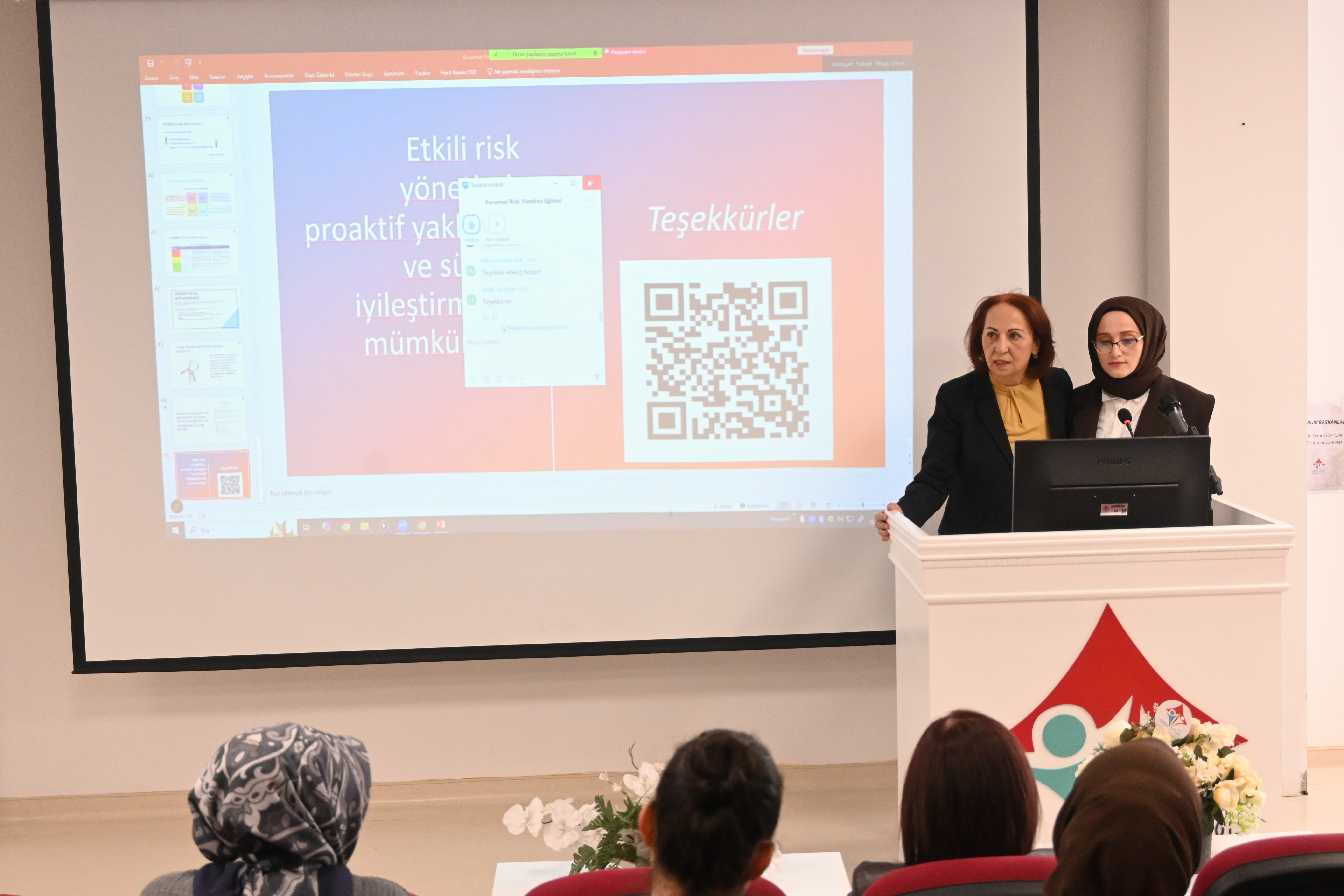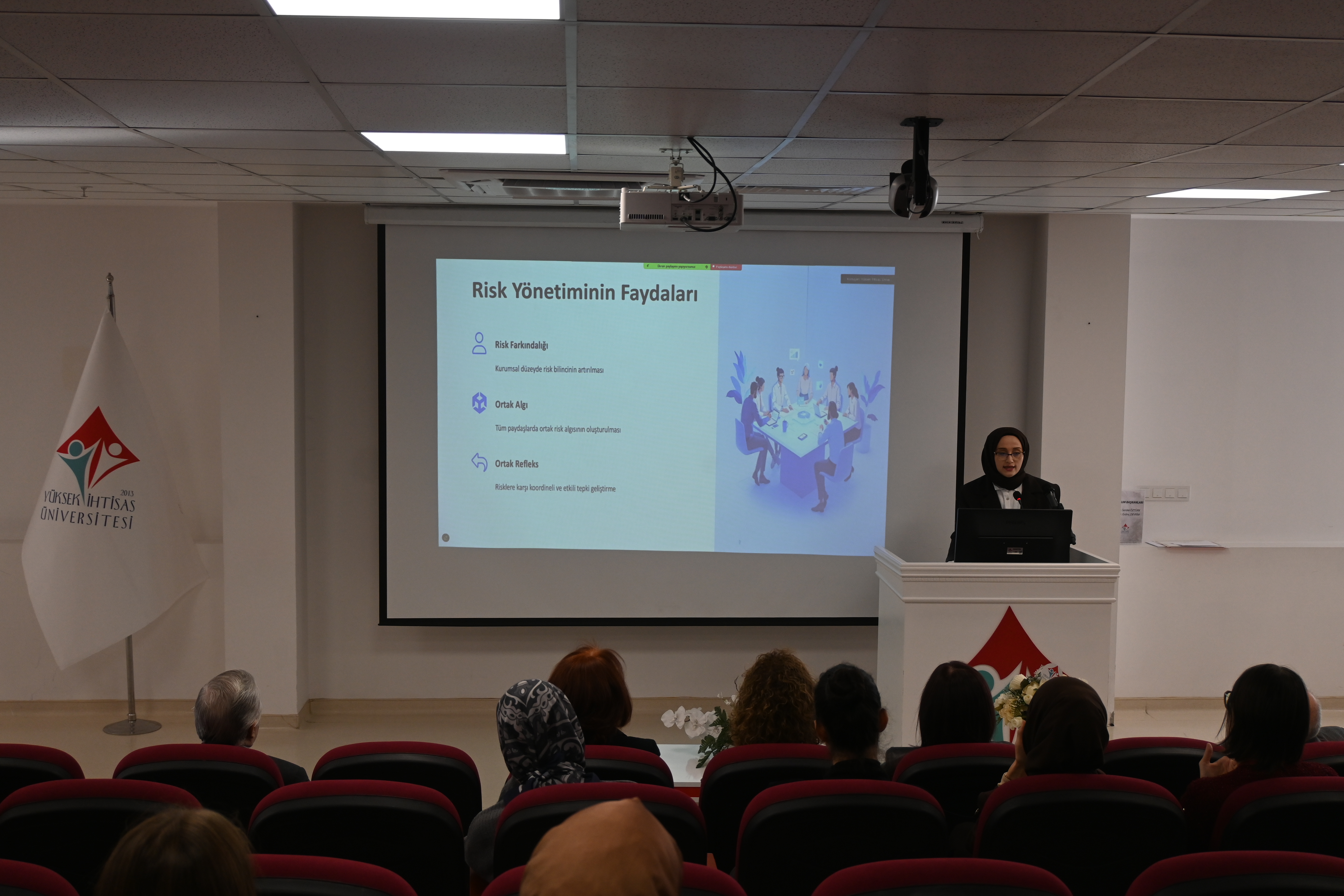 Eğitimde, kurumsal risk yönetiminin kalite güvencesi sistemi içindeki yeri, risk tanımlama ve olasılık–etki değerlendirme yöntemleri, kontrol faaliyetlerinin planlanması ve izleme süreçleri detaylı biçimde ele alınmıştır. Katılımcılarla yapılan uygulamalı çalışmalar aracılığıyla, birimlerin risk haritalarının oluşturulması ve iç kontrol sisteminin güçlendirilmesi konularında farkındalık kazandırıldı.