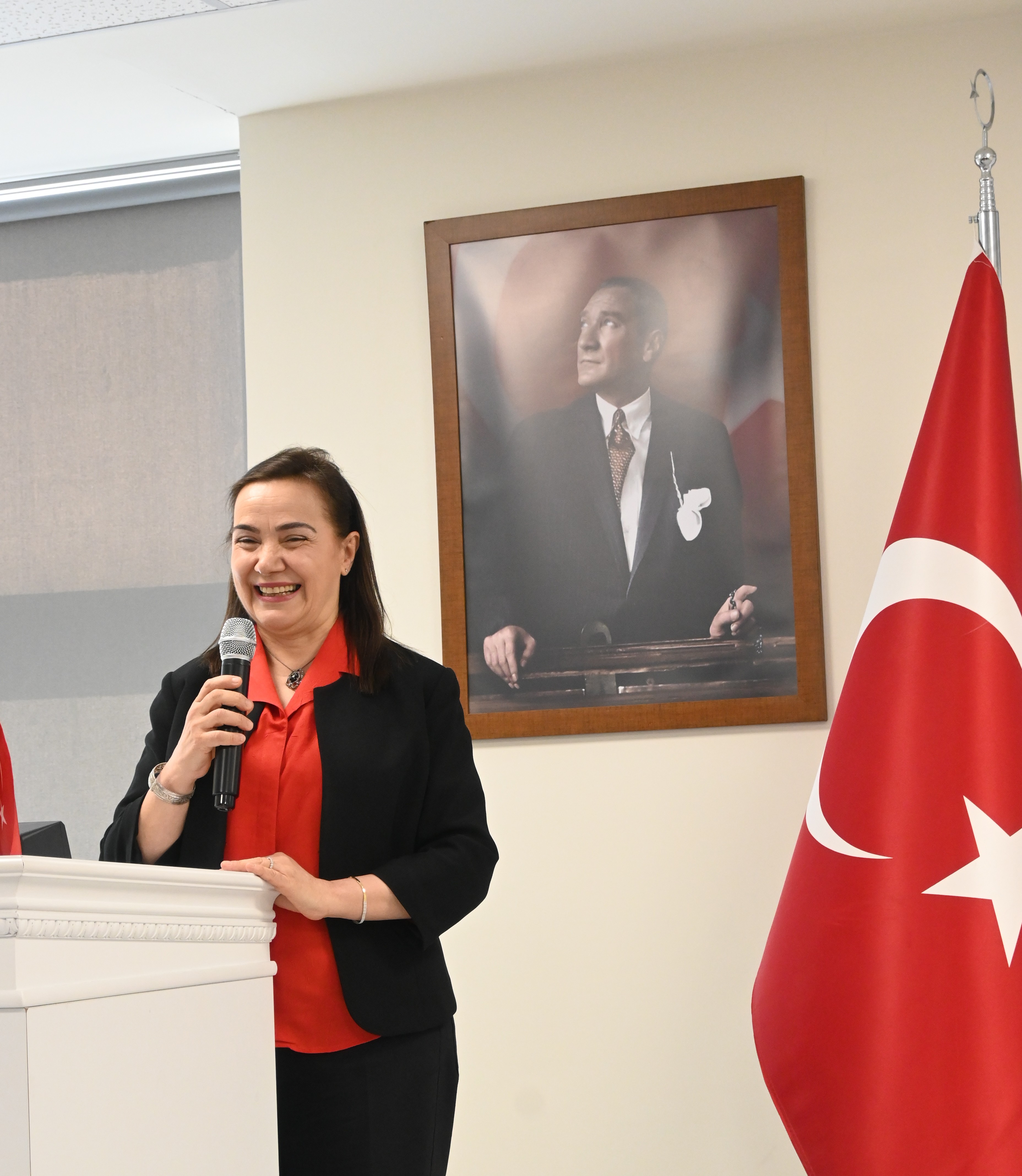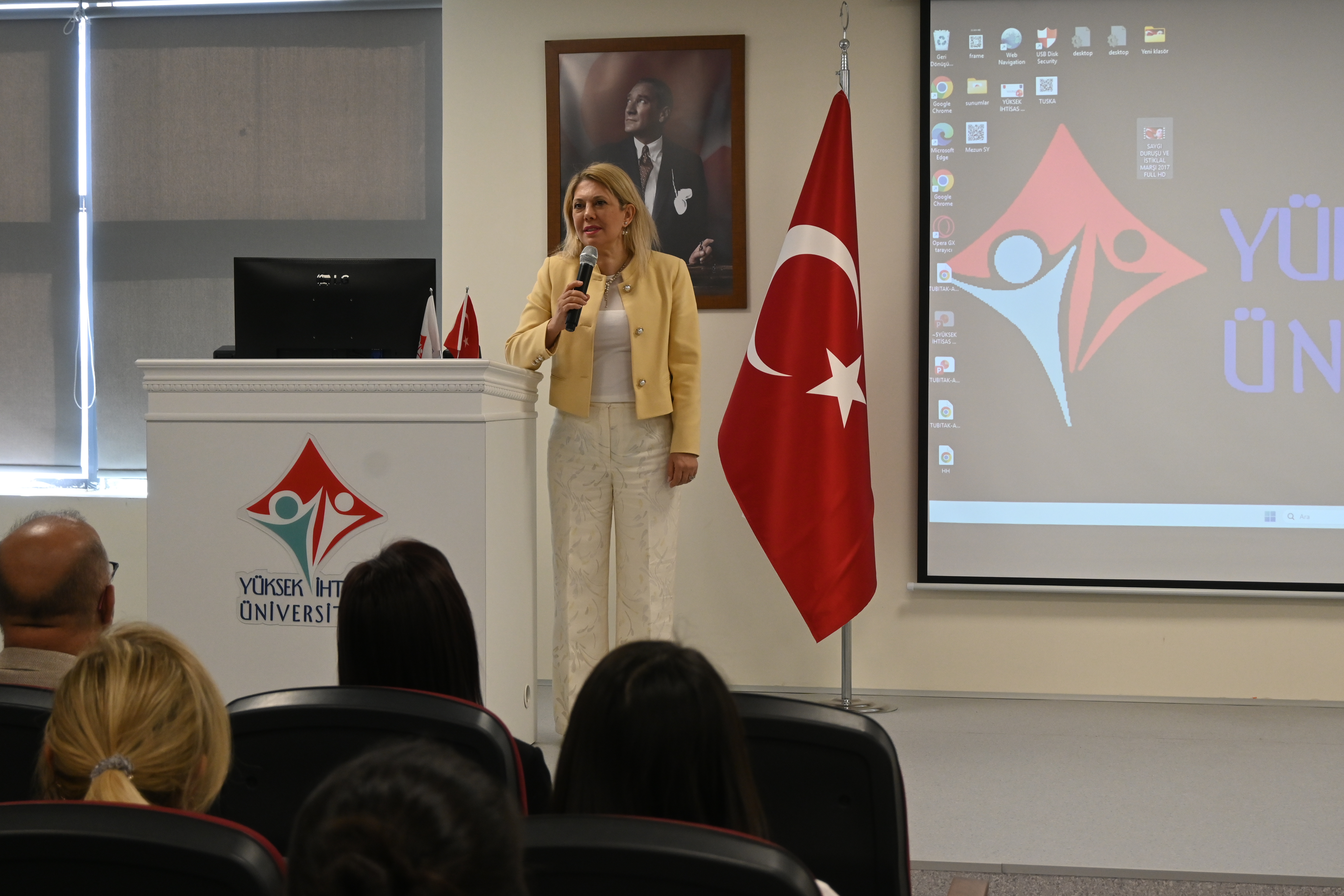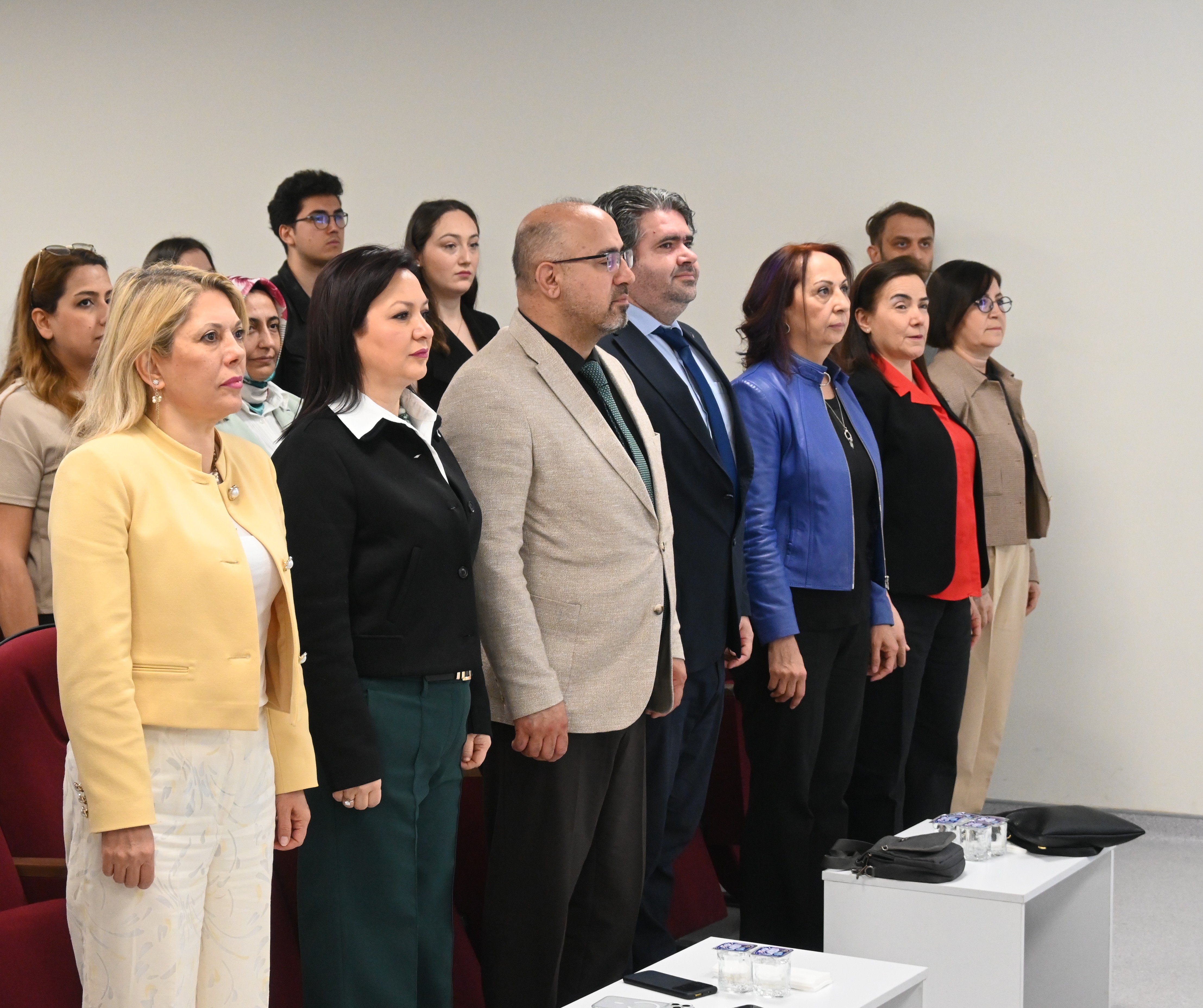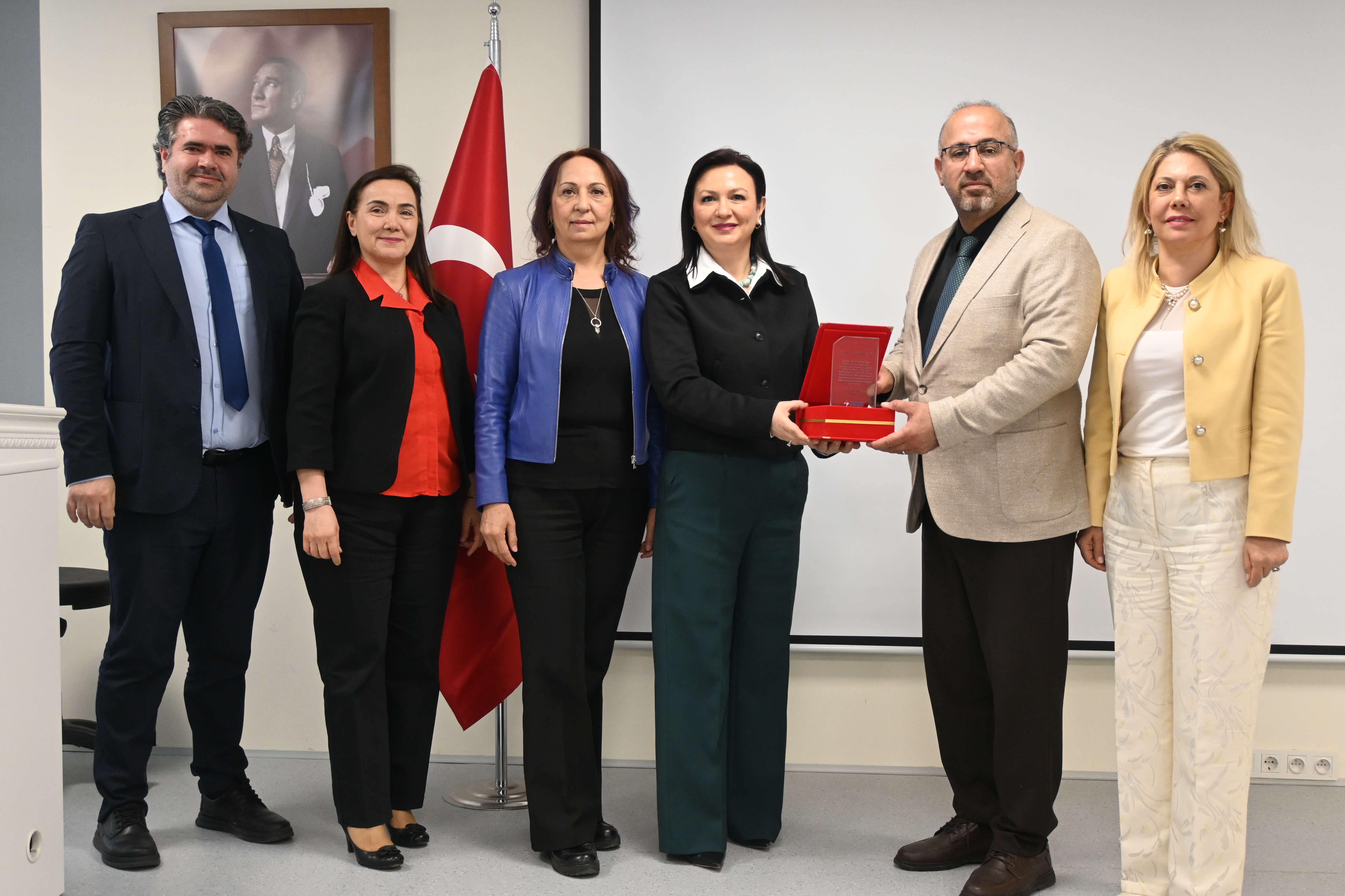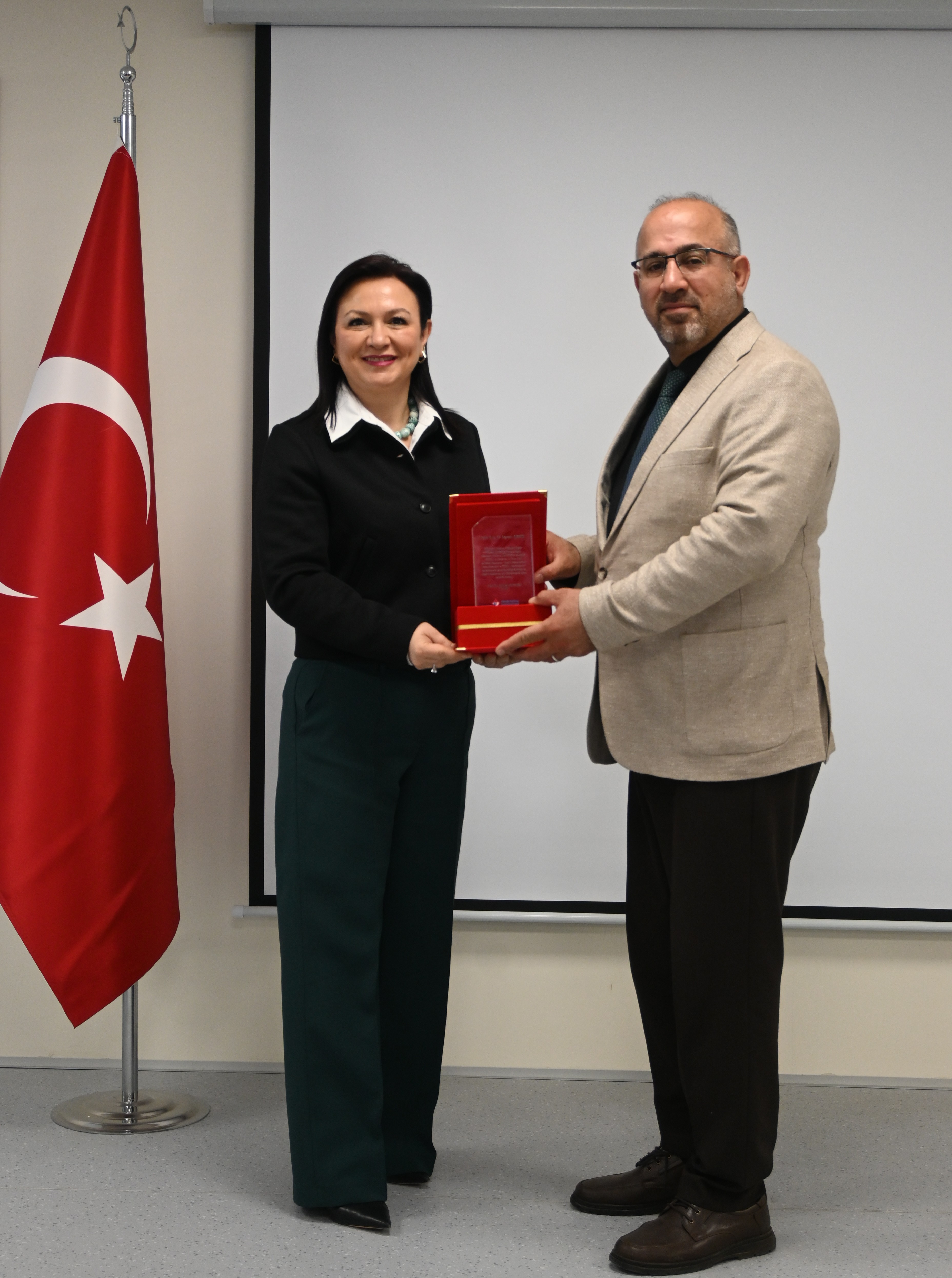 Programın sonunda Rektörümüz Prof. Dr. Şebnem KAVAKLI tarafından konuşmacı Doç. Dr. Bayram DEMİR’e plaket takdim edildi.