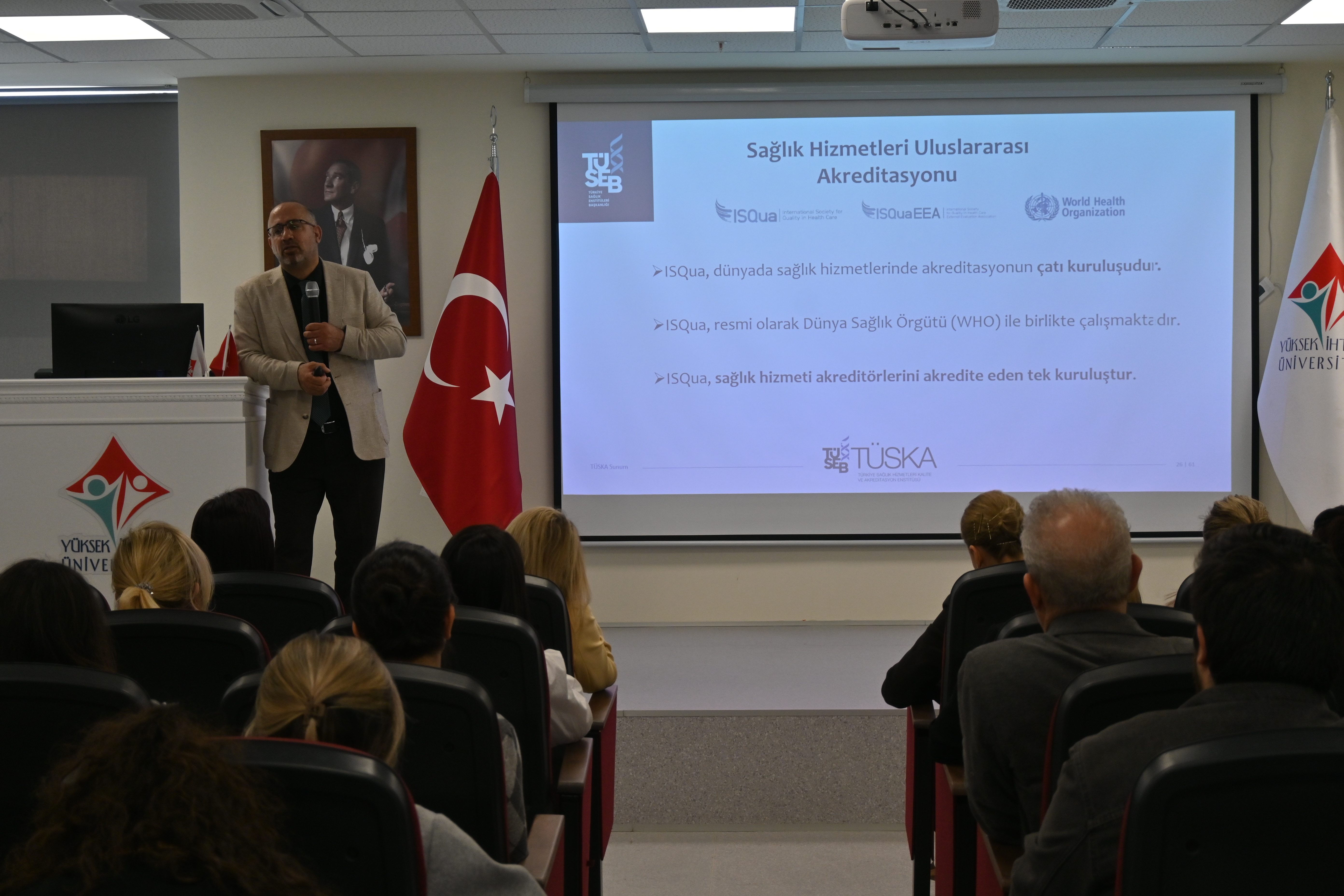 Sağlık Hizmetlerinde Kalite Sistemleri ve TÜSKA Akreditasyonu konulu konferans, 14 Nisan 2026 tarihinde Üniversitemiz Sağlık Bilimleri Fakültesi Konferans Salonu’nda gerçekleşti.