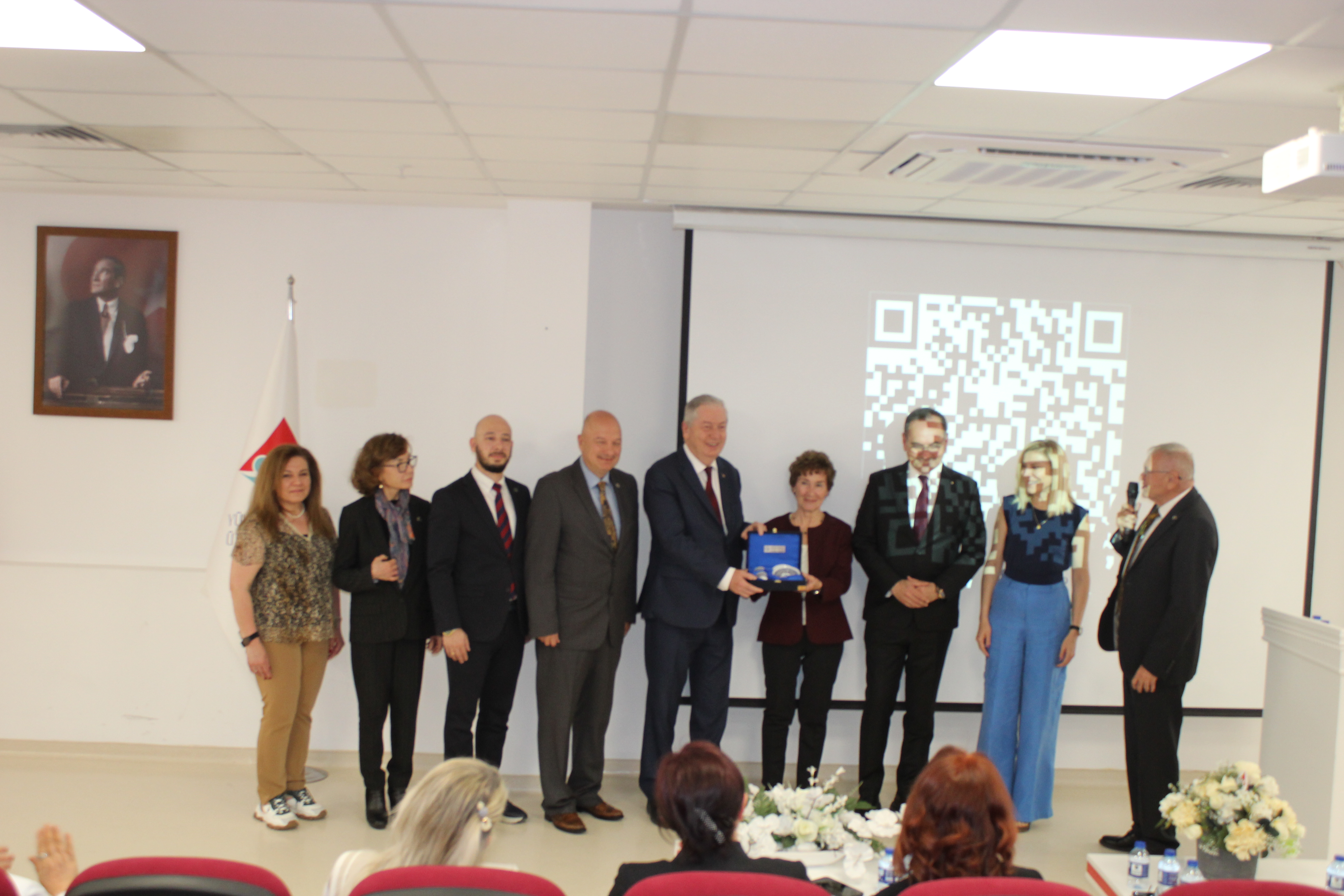Programın sonunda Rektörümüz Prof. Dr. Kadirhan SUNGUROĞLU, konuşmacılara katkılarından dolayı plaket takdim etti. Etkinlik, toplu hatıra fotoğrafının çekilmesiyle sona erdi.