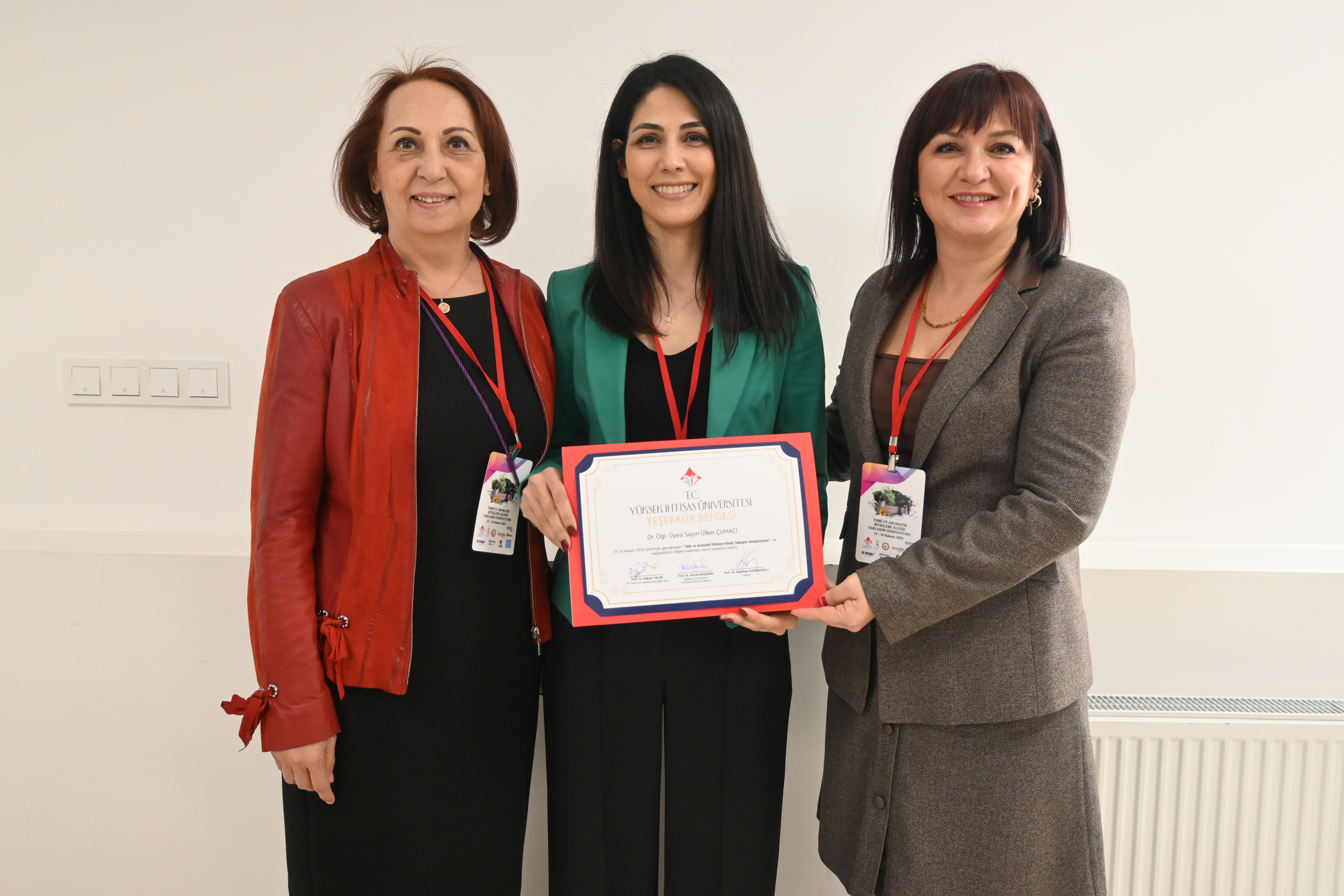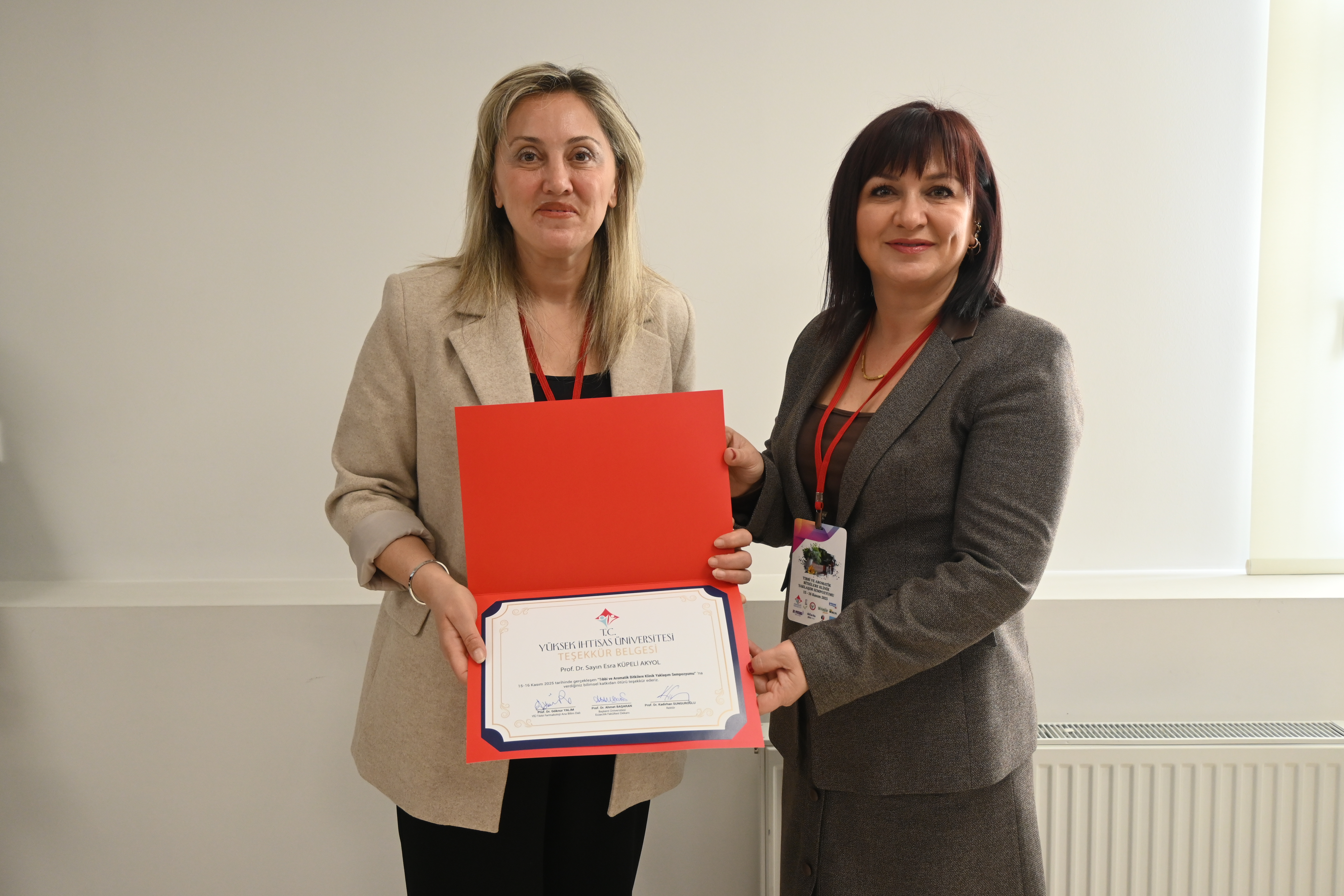 Programın sonunda tüm konuşmacılara ve oturum başkanlarına Rektörümüz Prof. Dr. Kadirhan SUNGUROĞLU, Prof. Dr. Ahmet BAŞARAN ve Prof. Dr. Göknur YALIM tarafından teşekkür belgesi takdim edildi.