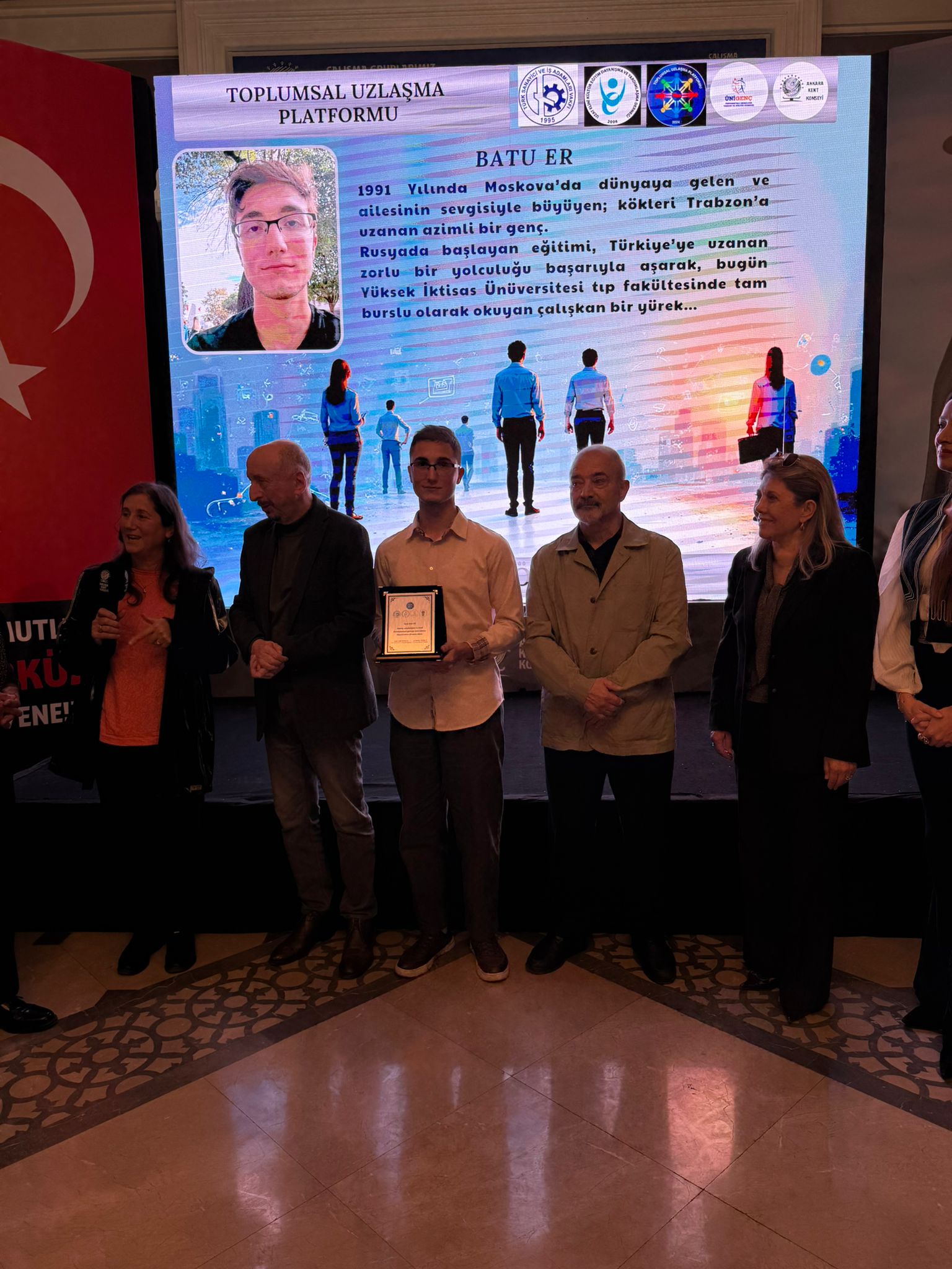 Tıp Fakültesi Türkçe Dönem II öğrencilerimiz Batu ER ve Deniz ÖZDEMİR, Toplumsal Uzlaşma Platformu tarafından düzenlenen törenle "Genç Başarı Ödülü"'ne layık görüldüler. Yüksek İhtisas Üniversitesi adına kendilerini tebrik ediyor, başarılarının devamını diliyoruz.