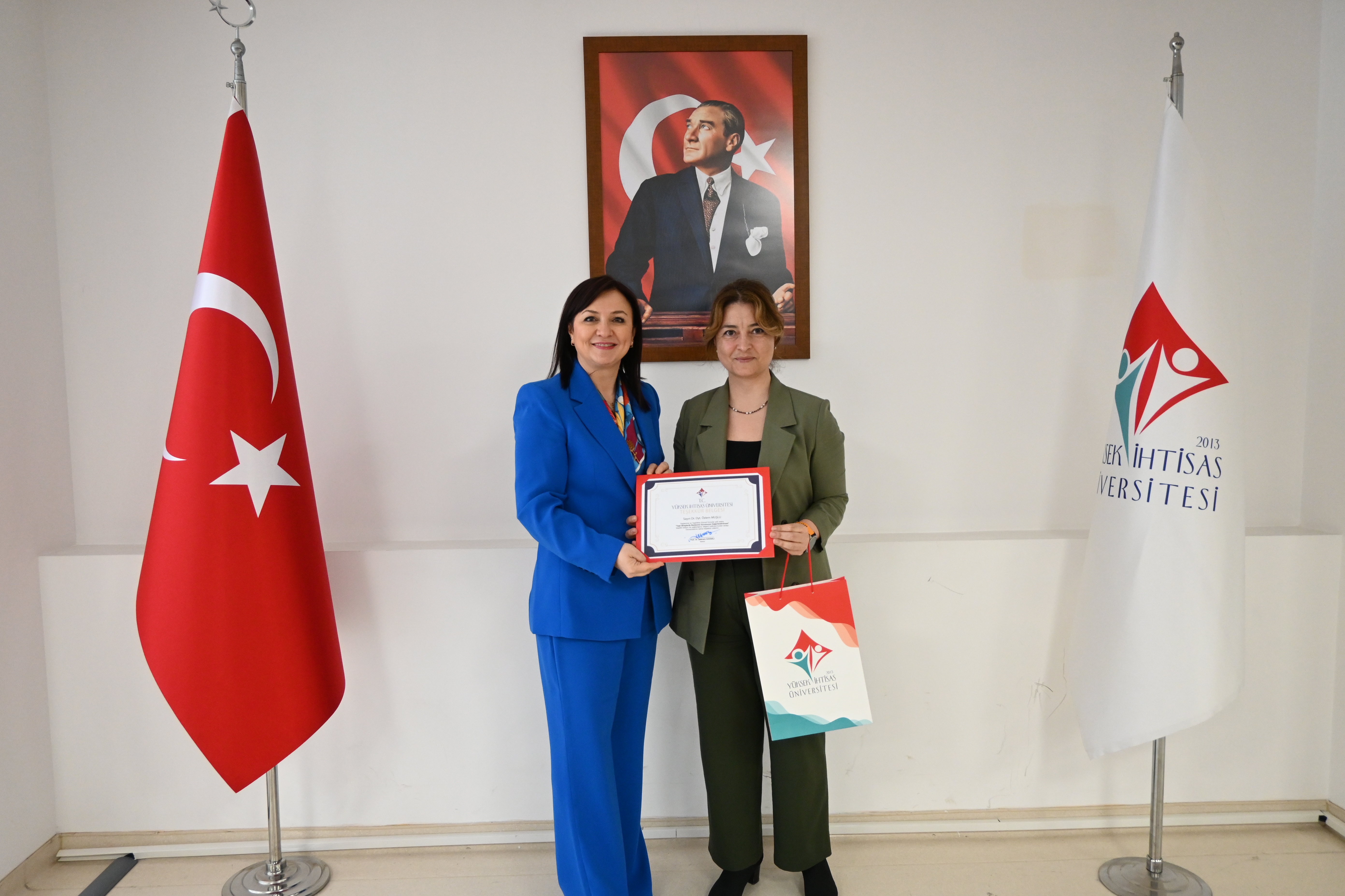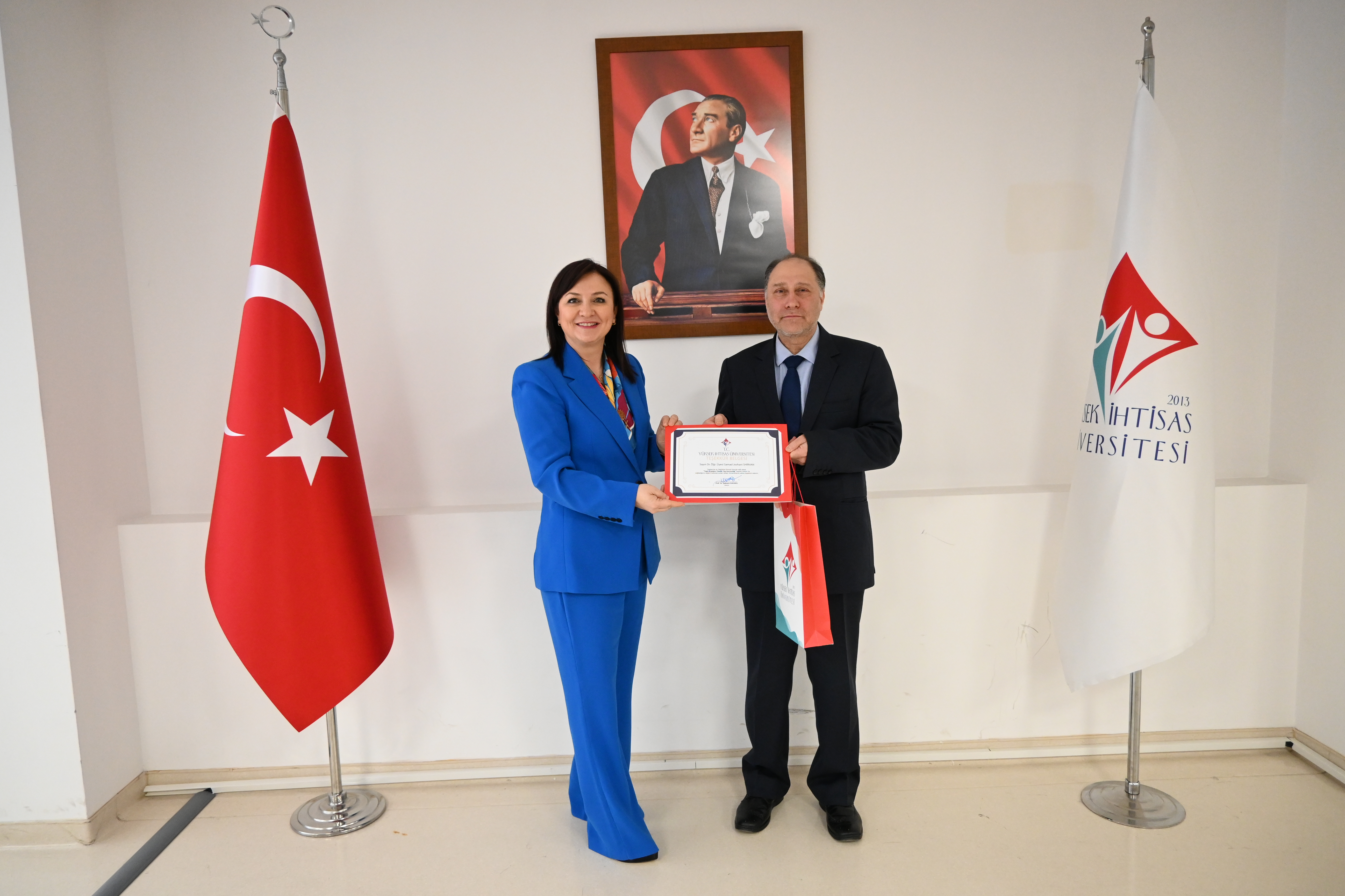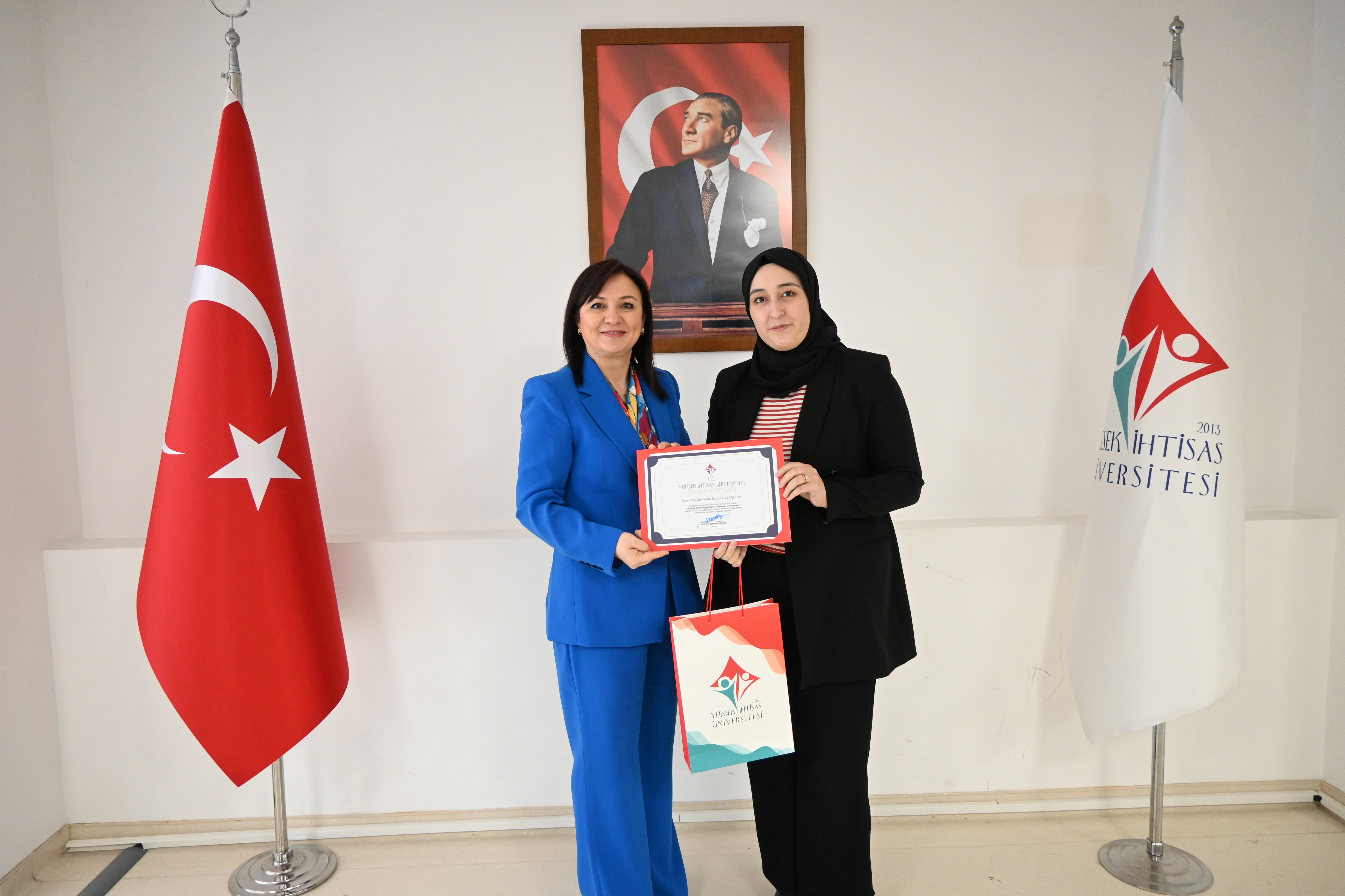Programın devamında, esere katkı sunan kıymetli akademisyenlerimize plaket ve teşekkür belgeleri takdim edildi.