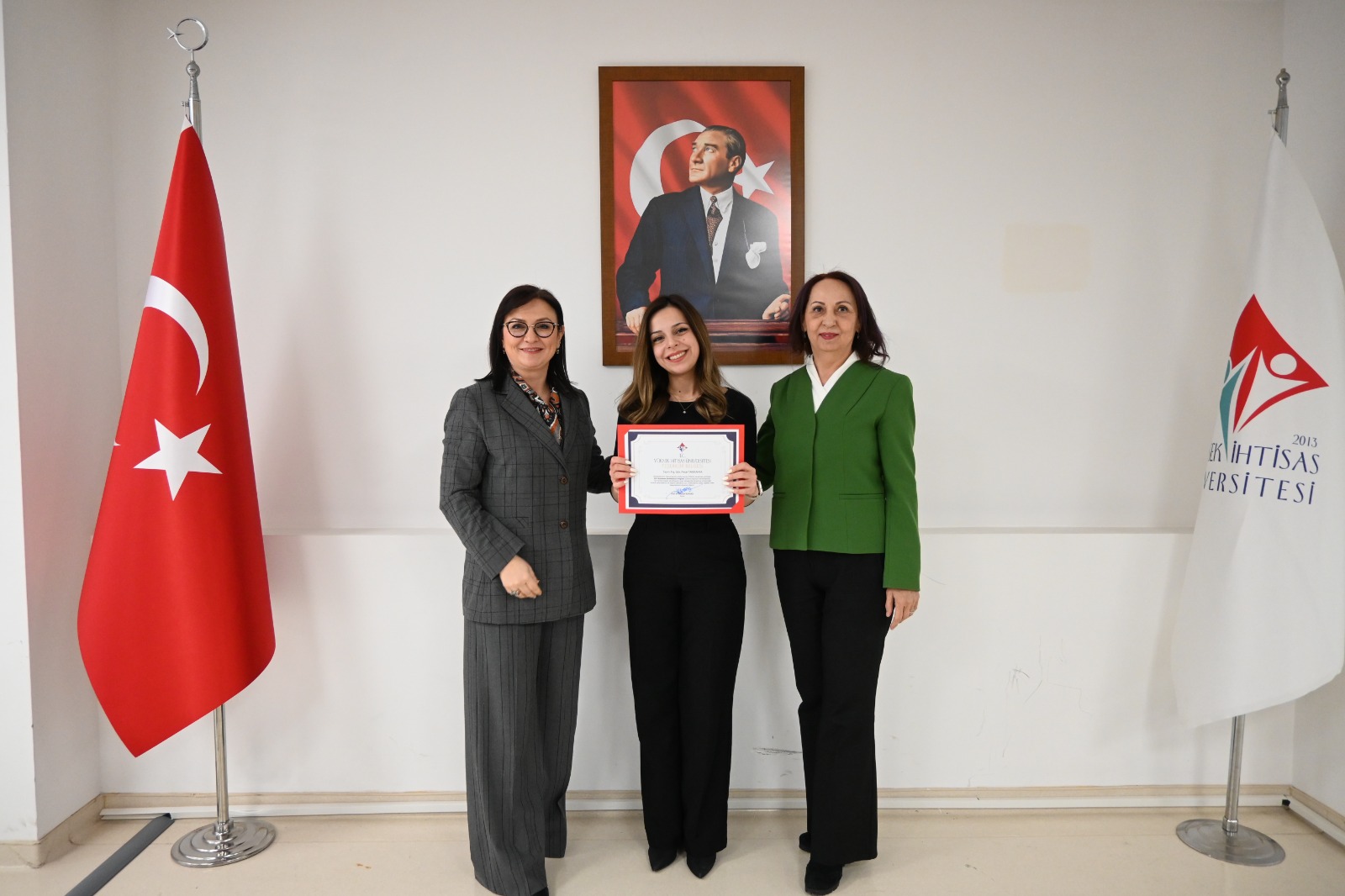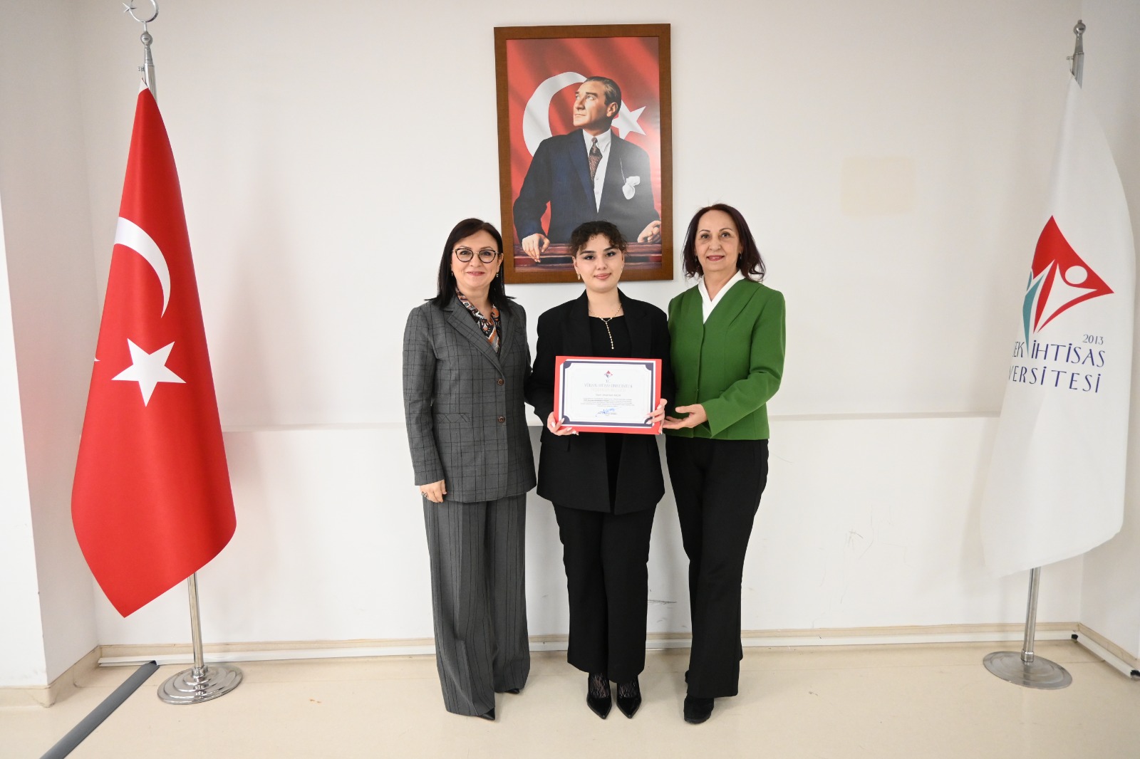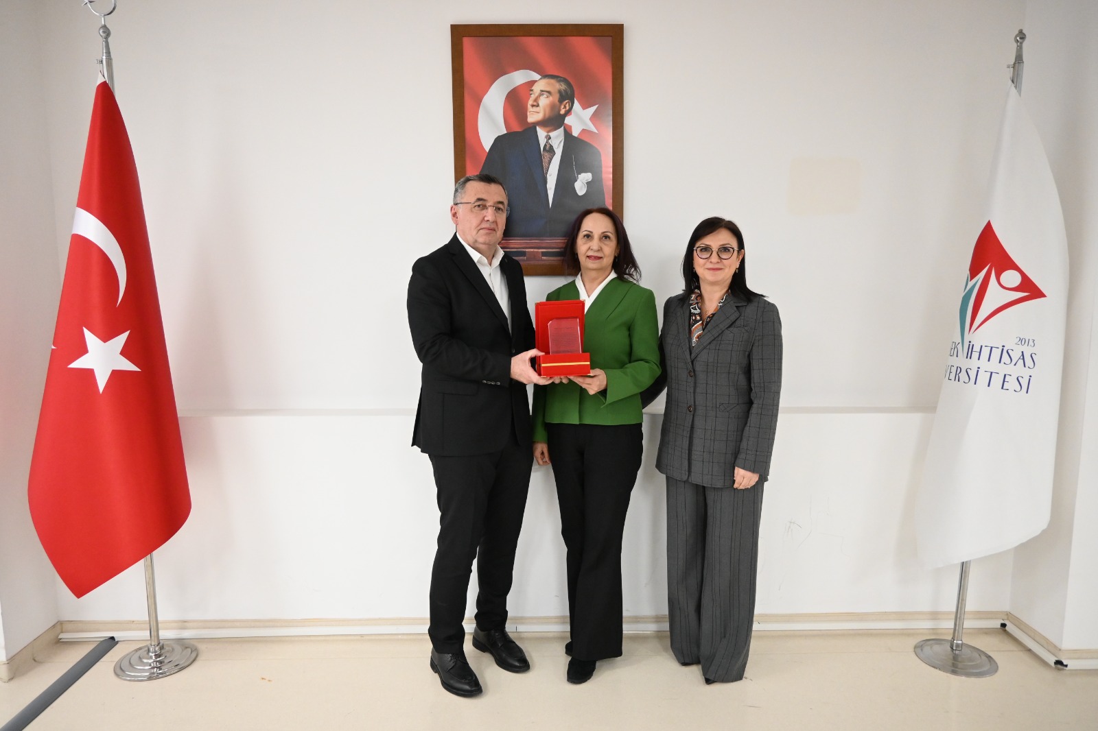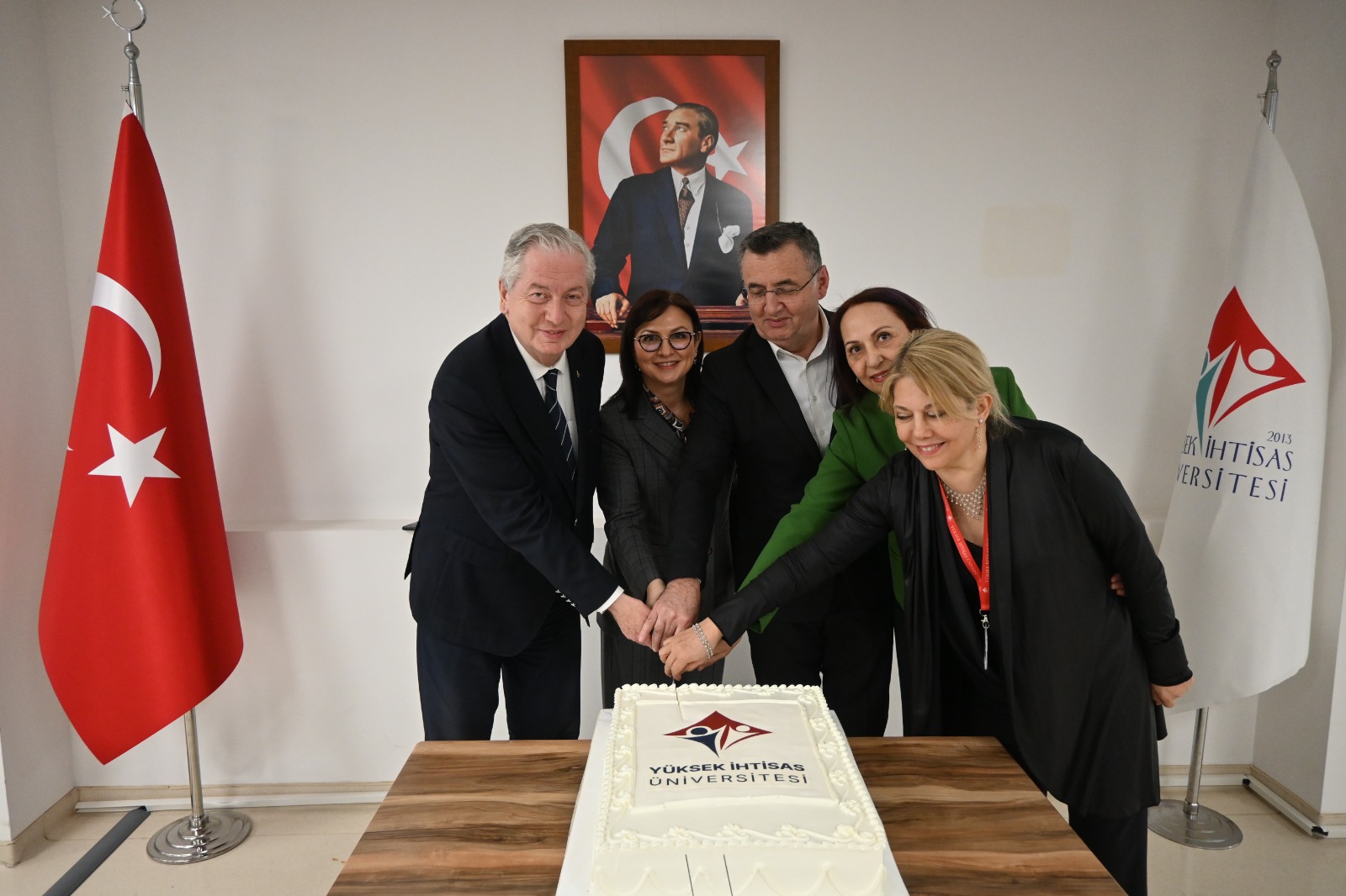 Büyük bir gurur ve coşkuya sahne olan etkinlikte, Mütevelli Heyet Başkanımız Sayın Erol USTA, Rektörümüz Prof. Dr. Şebnem KAVAKLI ve Rektör Yardımcımız Prof. Dr. Özgül KISA konuşmalarını gerçekleştirdi. Yapılan konuşmalarda, bu önemli başarının büyük bir azim, kararlılık ve güçlü bir ekip çalışmasıyla elde edildiği vurgulandı.