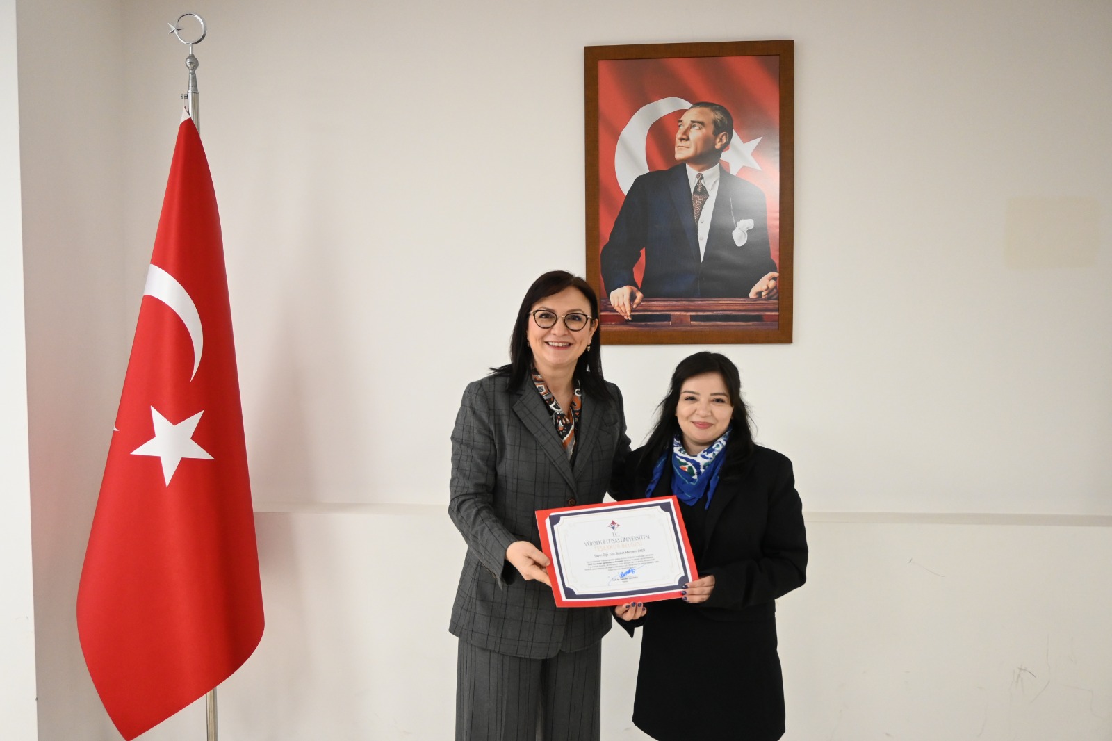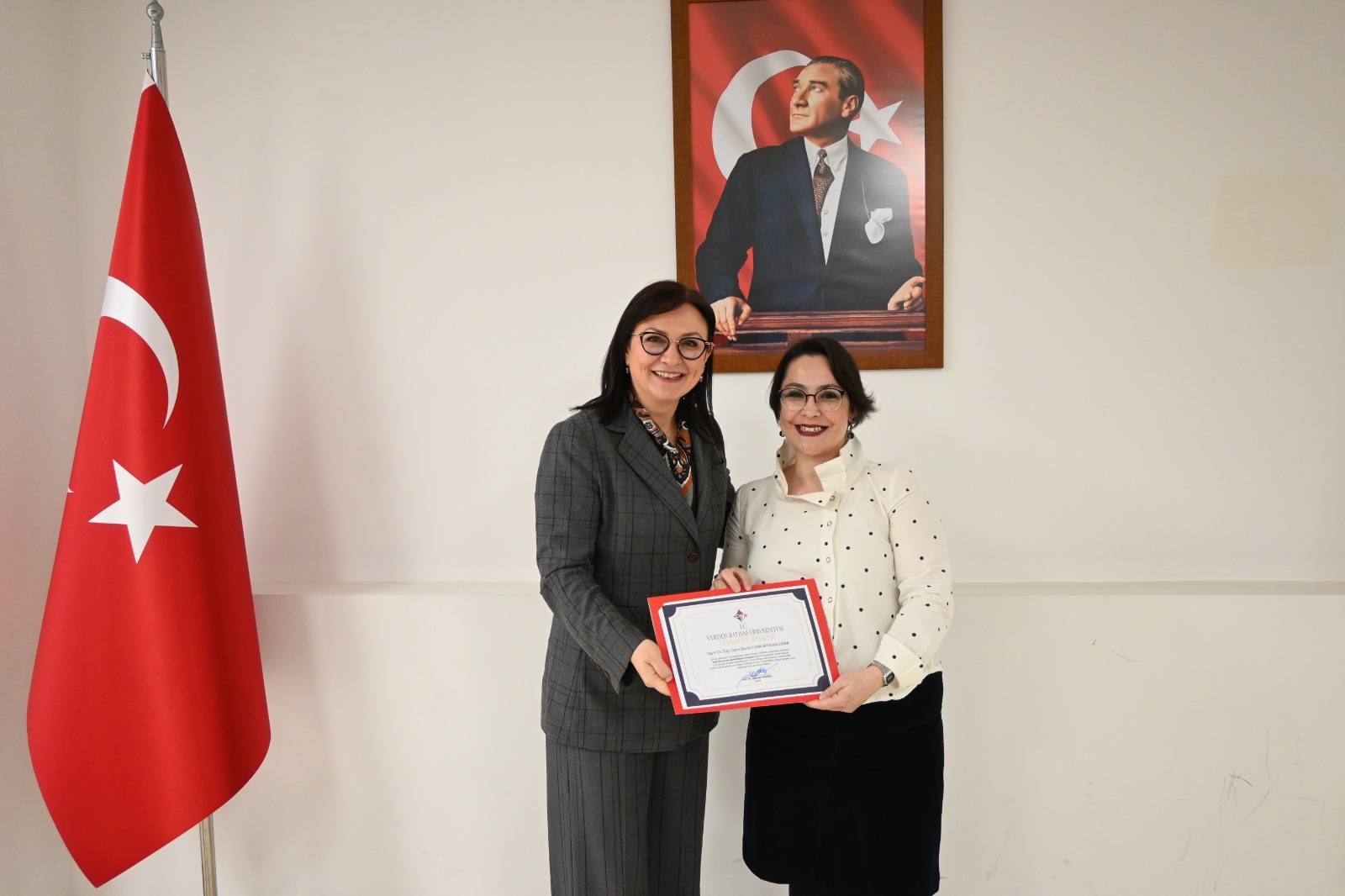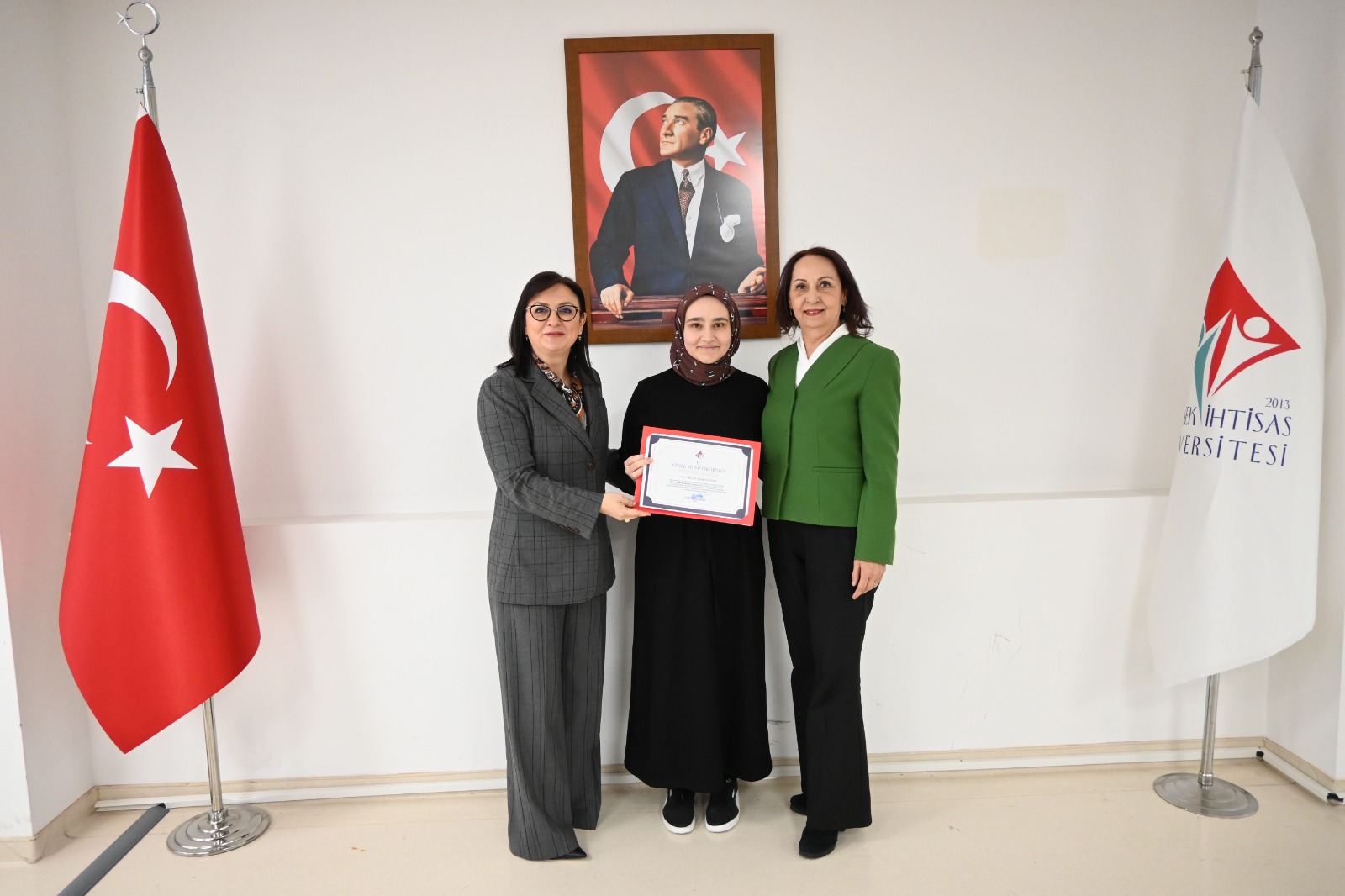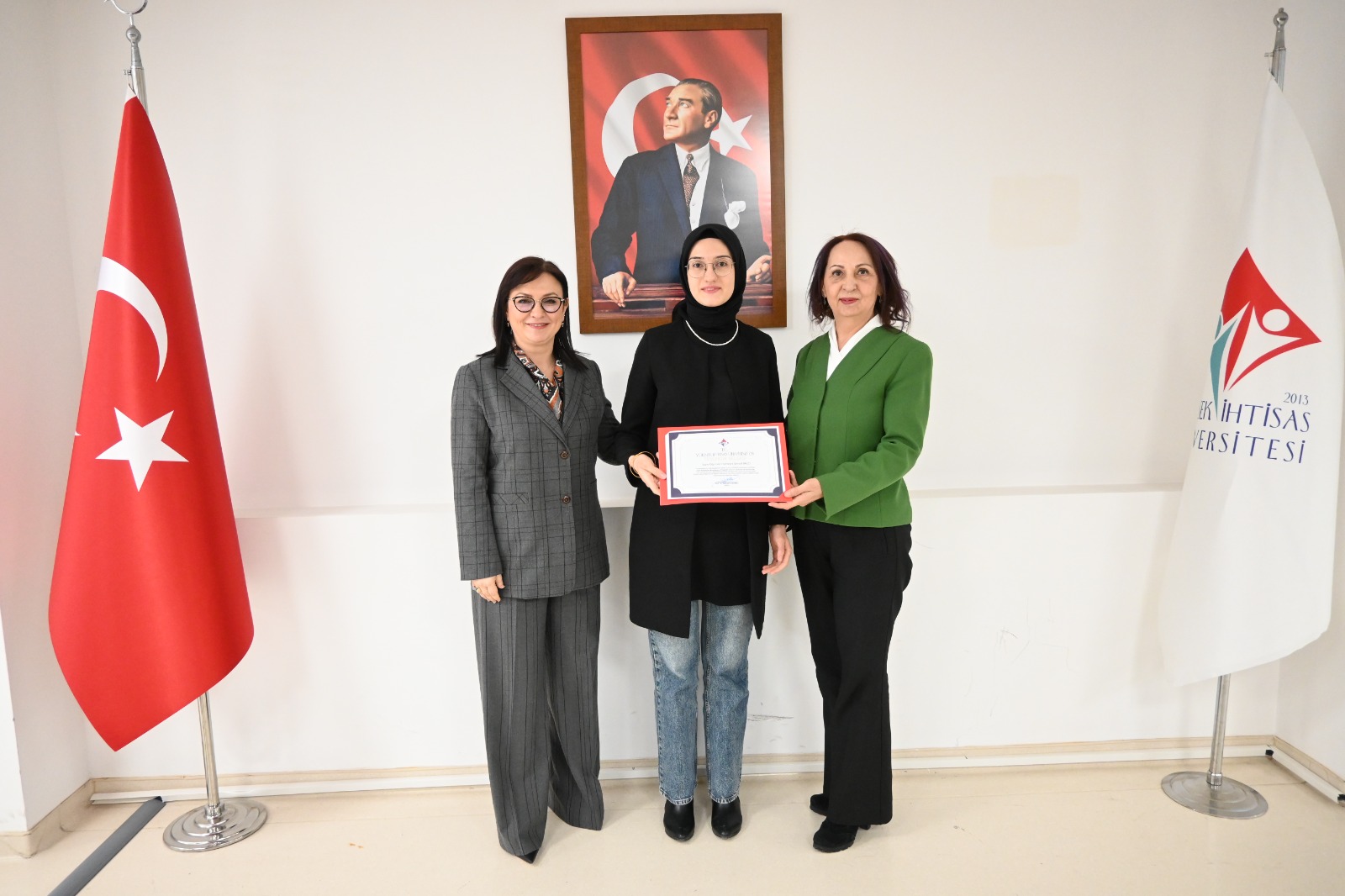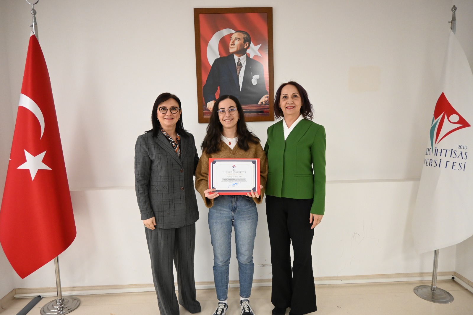Büyük bir gurur ve coşkuya sahne olan etkinlikte, Mütevelli Heyet Başkanımız Sayın Erol USTA, Rektörümüz Prof. Dr. Şebnem KAVAKLI ve Rektör Yardımcımız Prof. Dr. Özgül KISA konuşmalarını gerçekleştirdi. Yapılan konuşmalarda, bu önemli başarının büyük bir azim, kararlılık ve güçlü bir ekip çalışmasıyla elde edildiği vurgulandı.