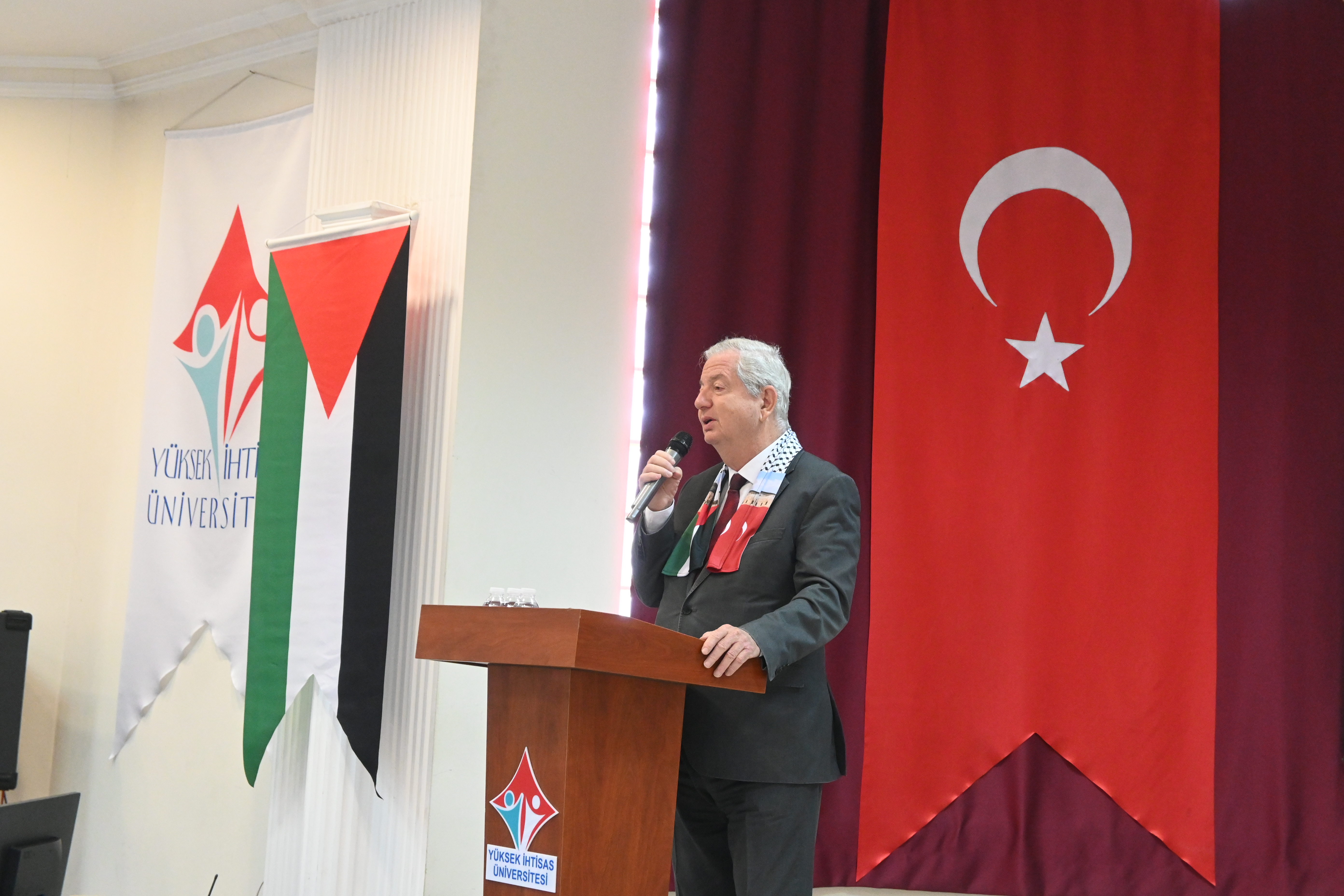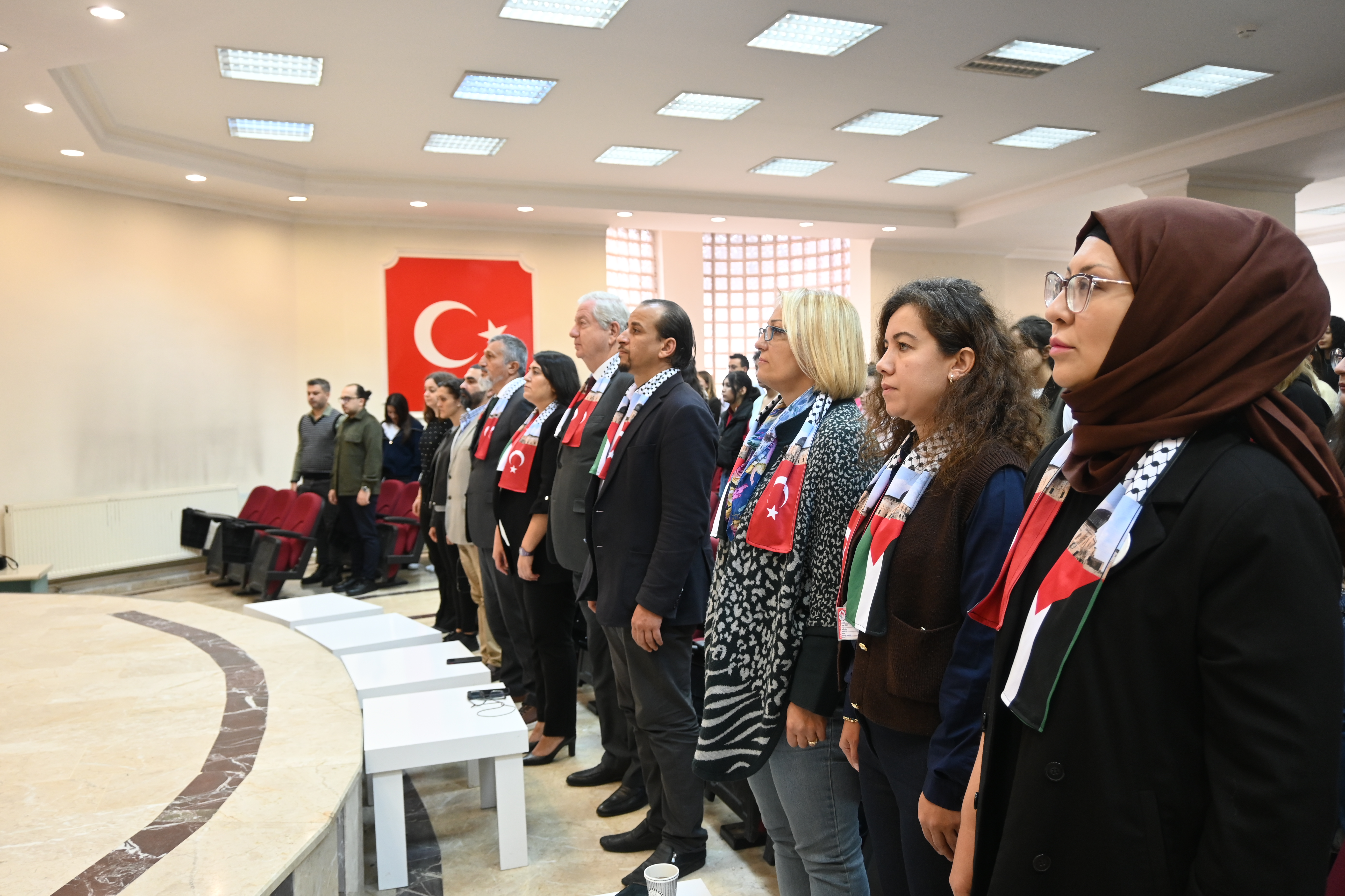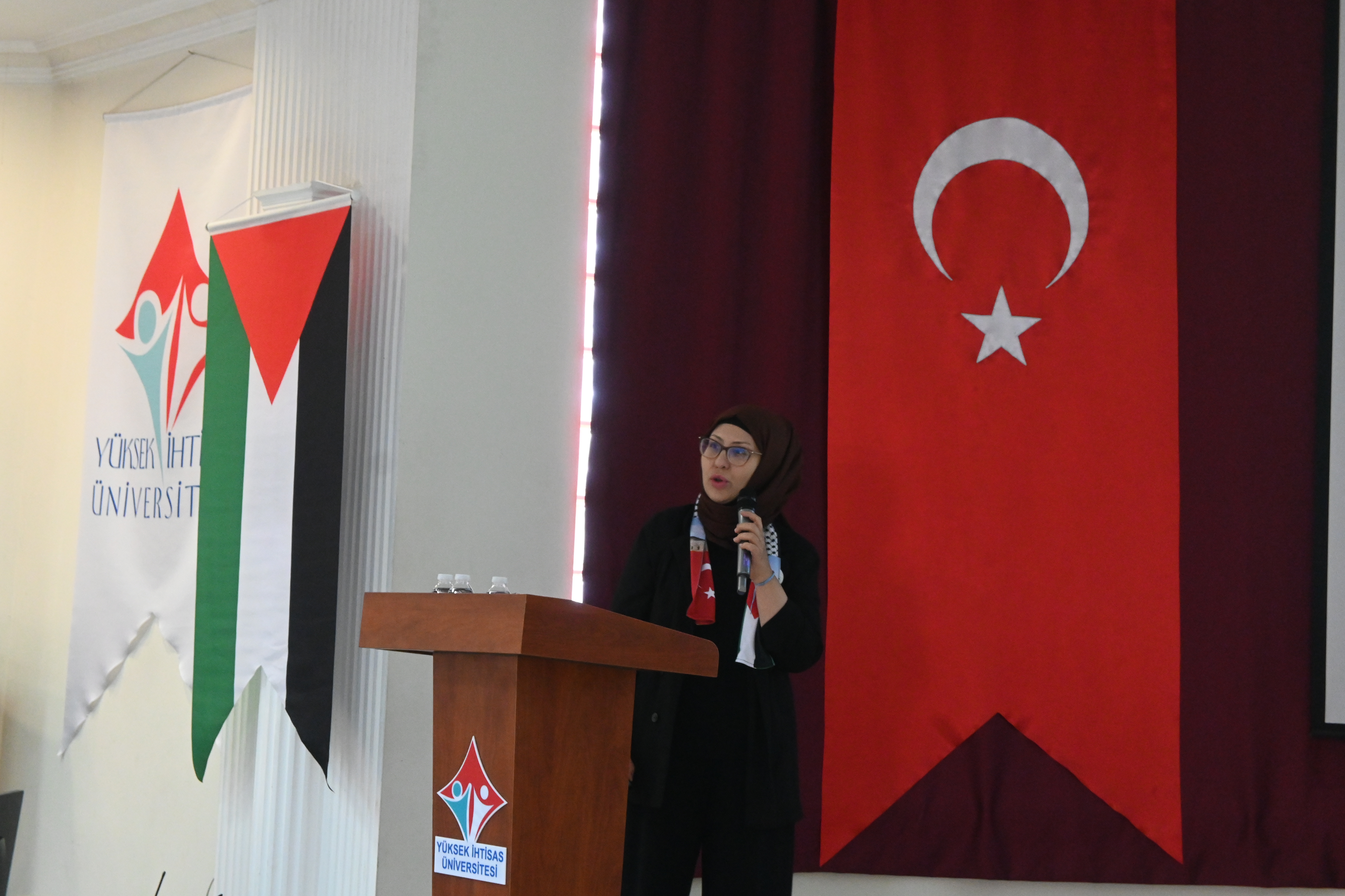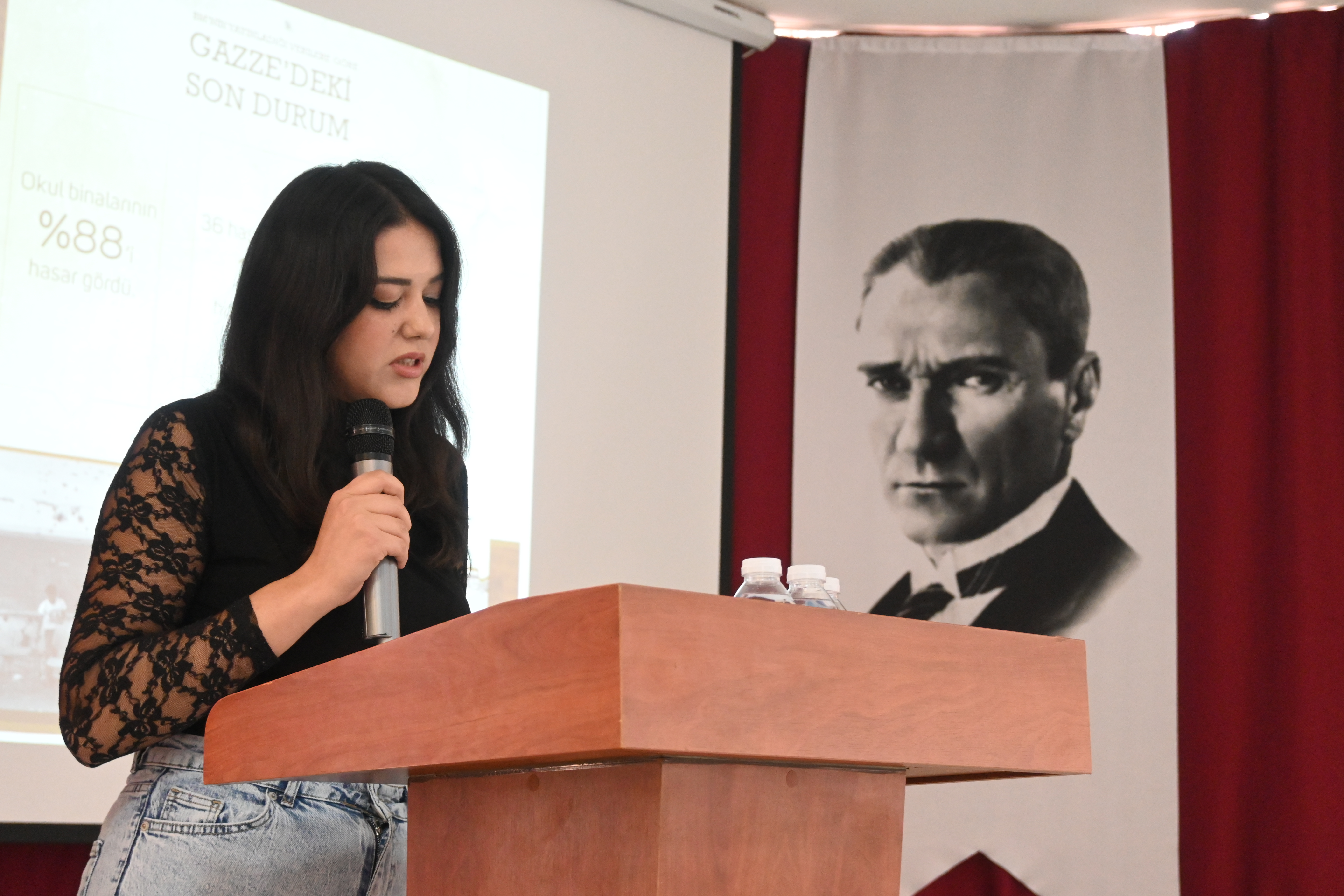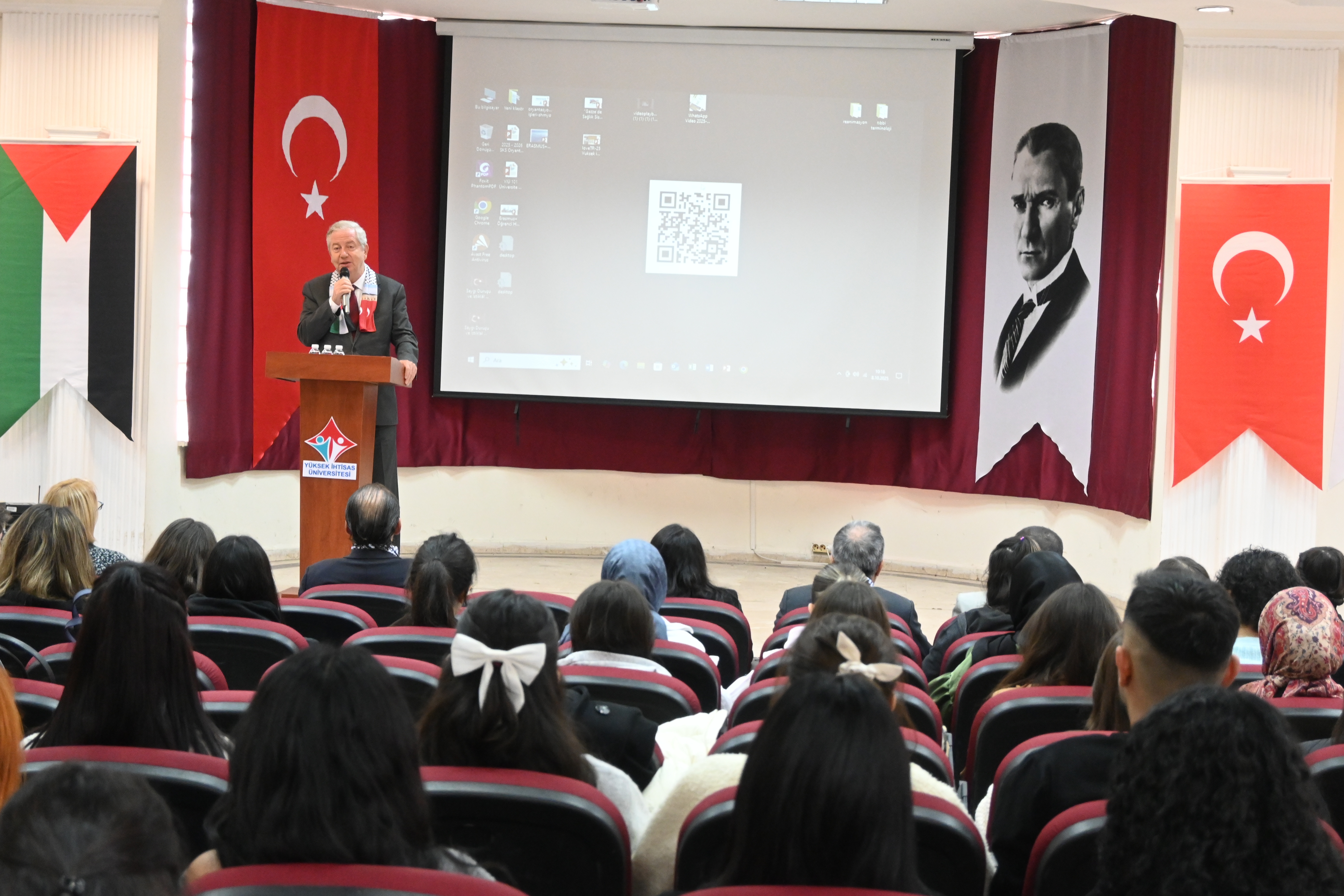 Programda ayrıca Yabancı Diller Yüksekokulu Müdürü Dr. Öğr. Üyesi Hakkı YEŞİLYURT Gazze’ye ithafen şiir okudu; Tıbbi Hizmetler ve Teknikler Bölümü Ameliyathane Hizmetleri Program Başkanı Öğr. Gör. Emine ÖNER KARAVELİ ve Ameliyathane Hizmetleri öğrencisi Rümeysa BULUT da Gazze’ye dair duygu ve düşüncelerini paylaştı.