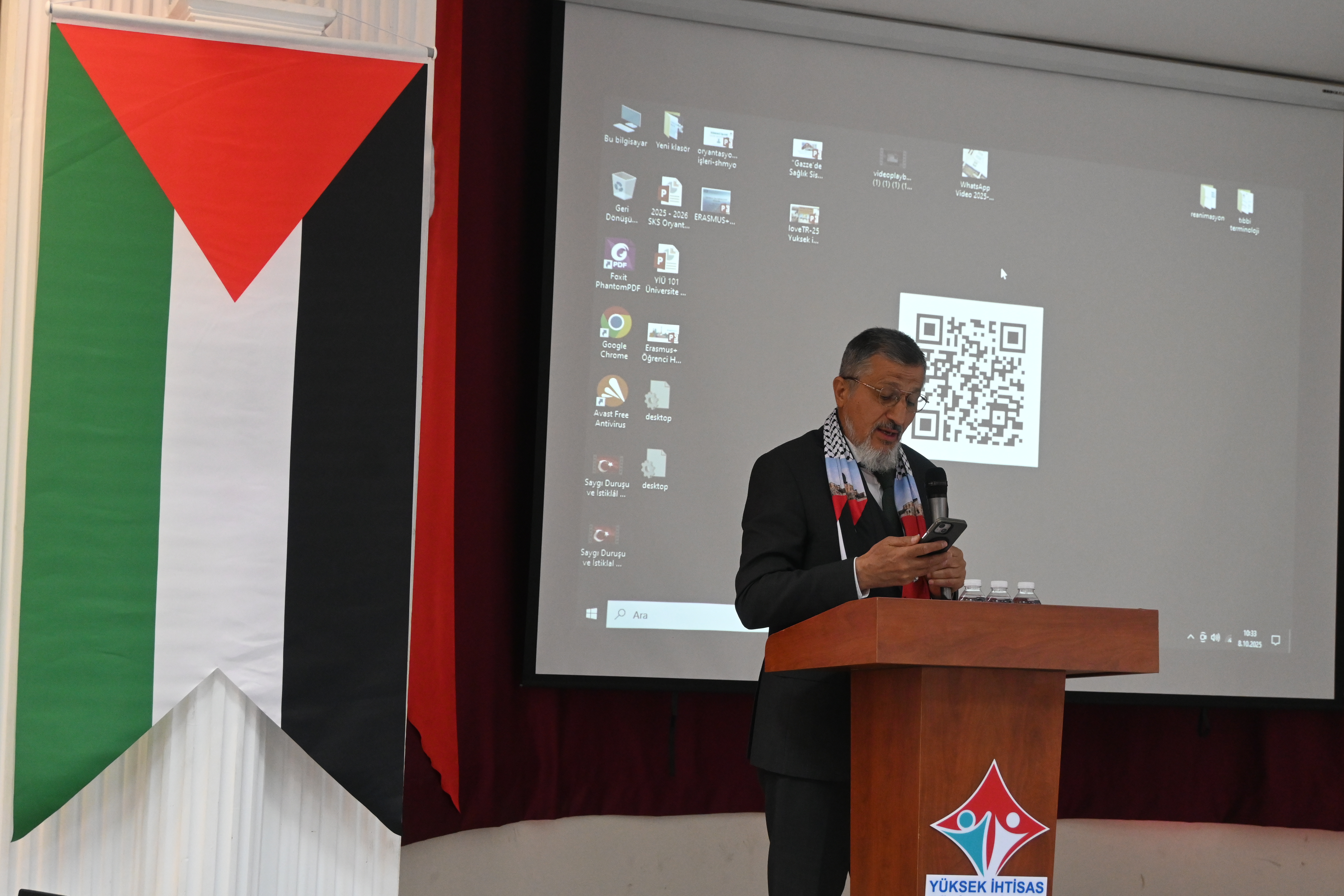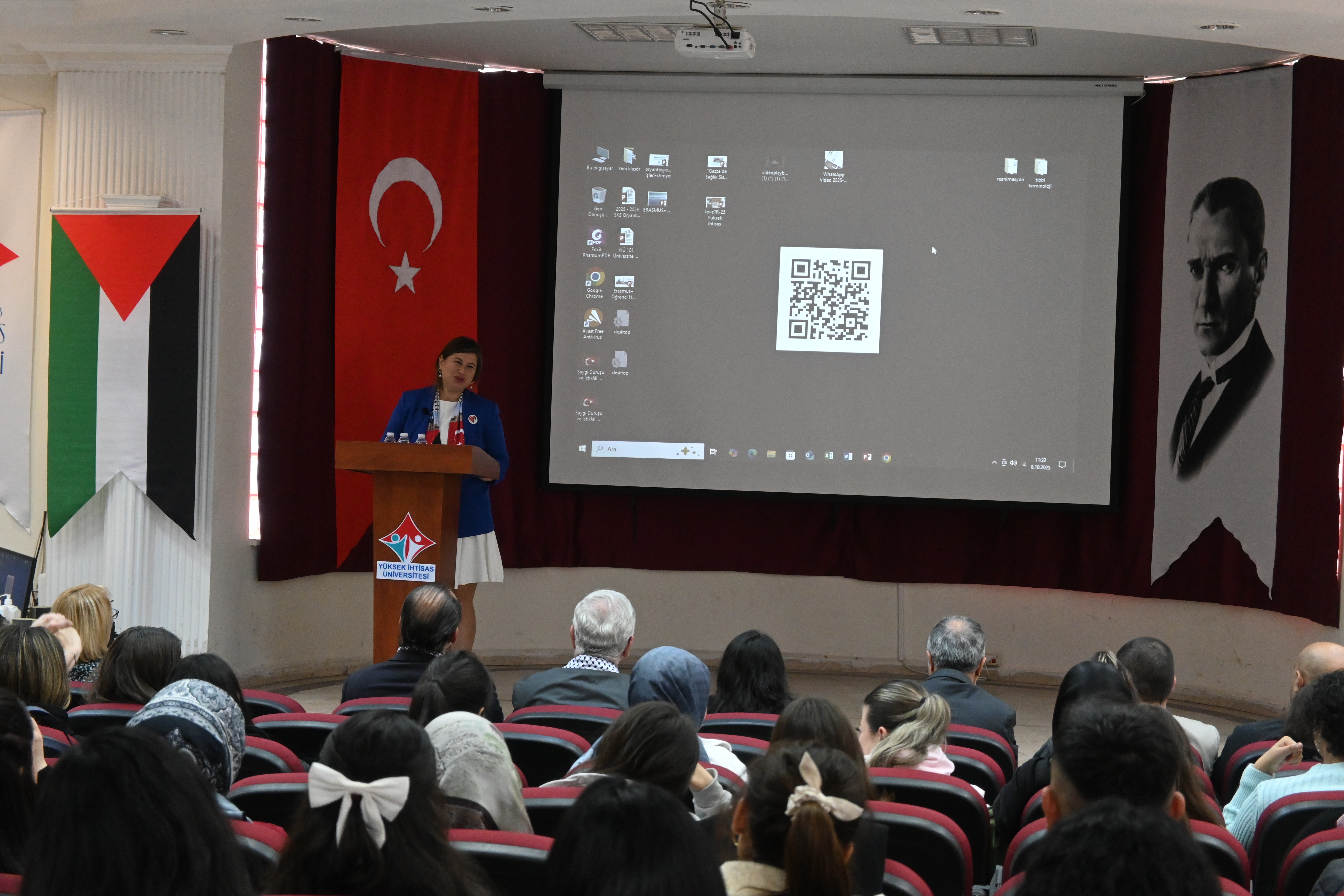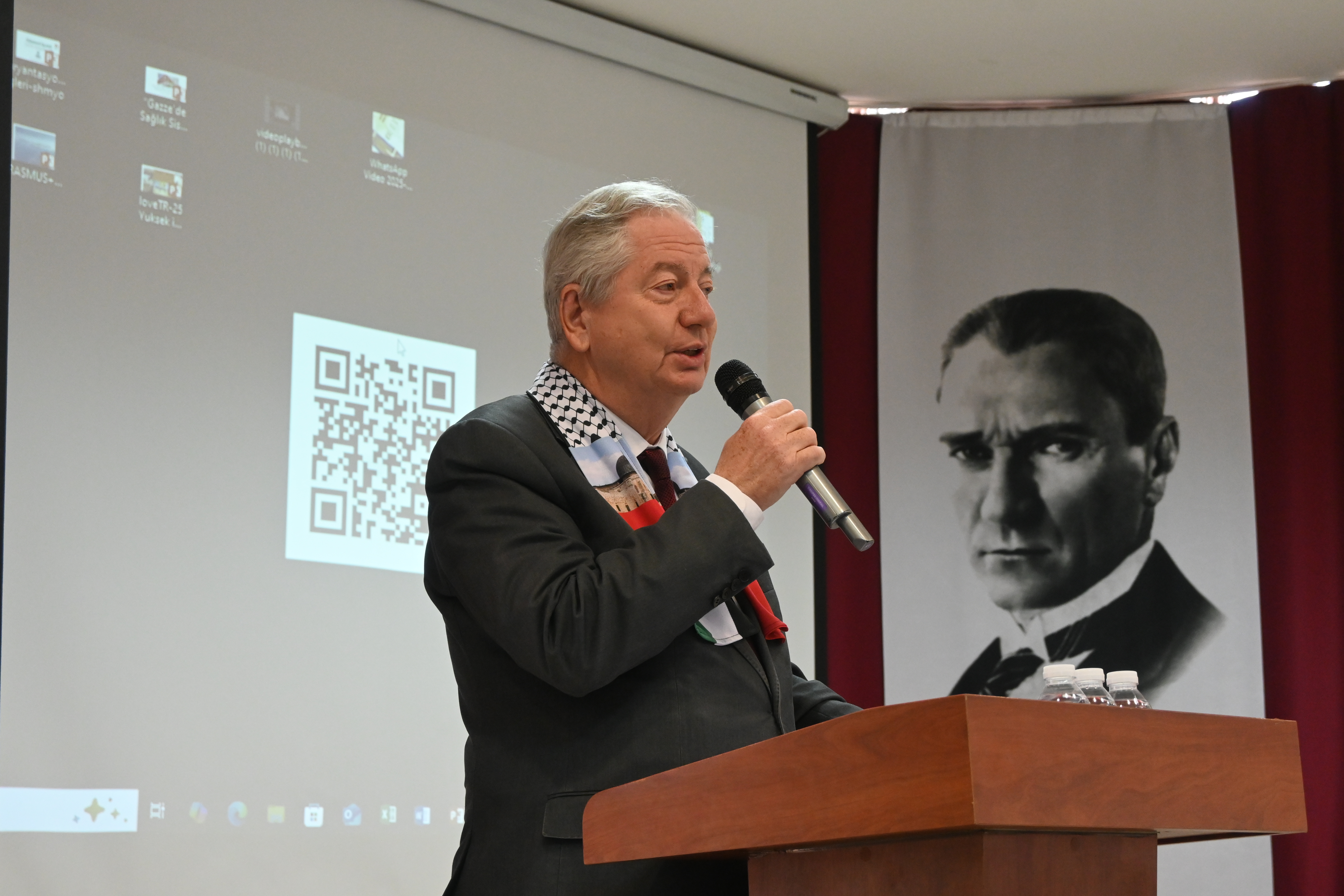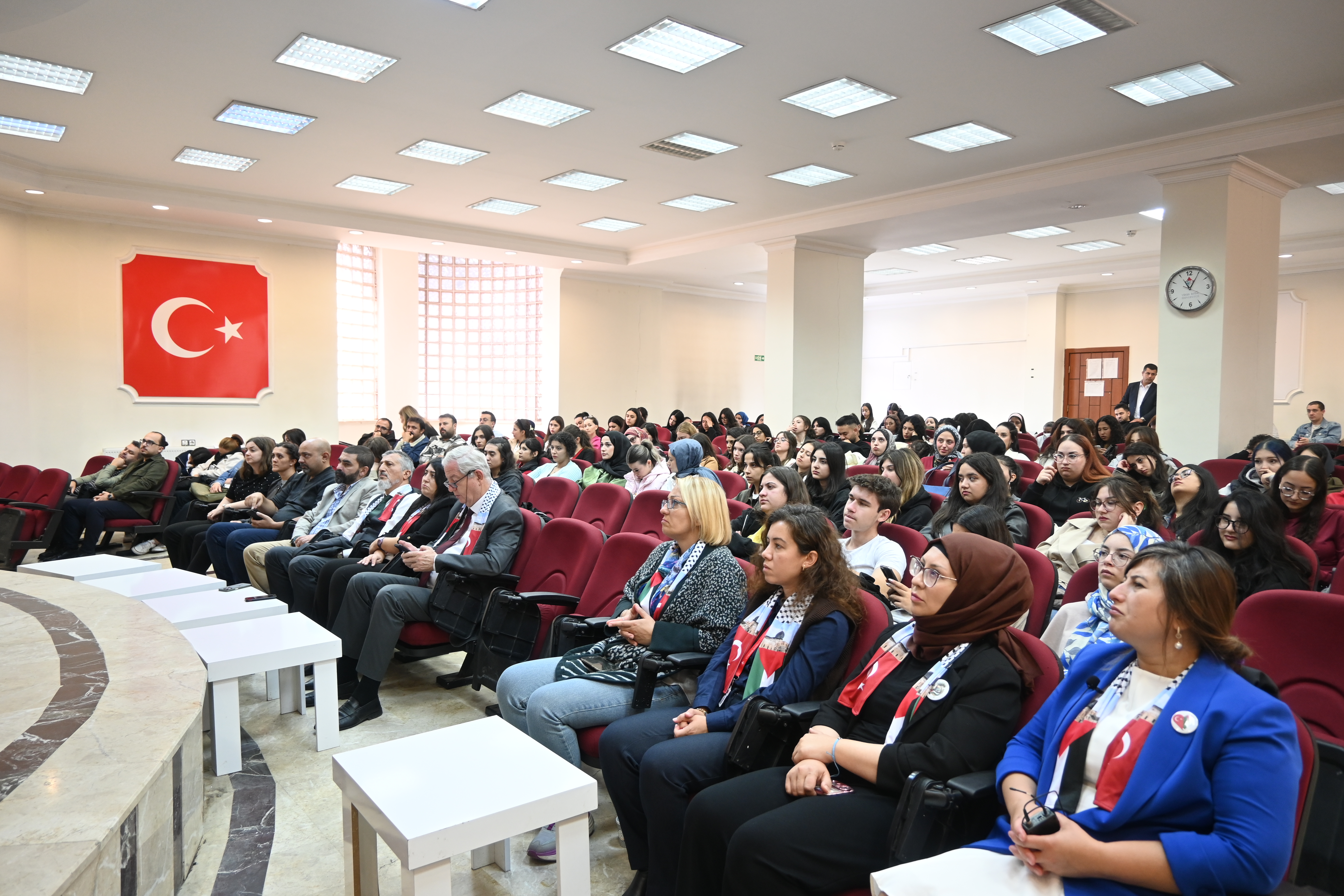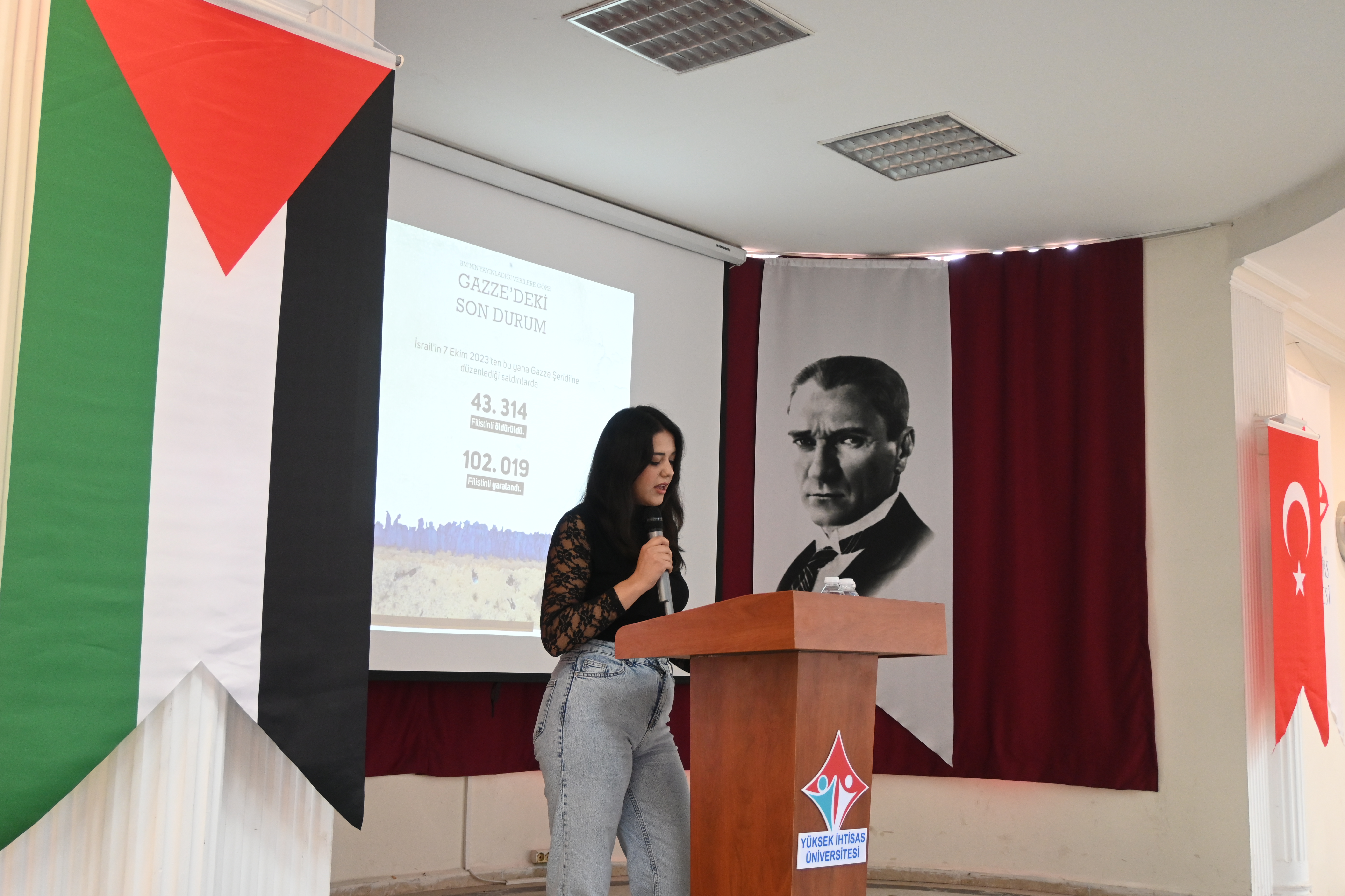 Programda ayrıca Yabancı Diller Yüksekokulu Müdürü Dr. Öğr. Üyesi Hakkı YEŞİLYURT Gazze’ye ithafen şiir okudu; Tıbbi Hizmetler ve Teknikler Bölümü Ameliyathane Hizmetleri Program Başkanı Öğr. Gör. Emine ÖNER KARAVELİ ve Ameliyathane Hizmetleri öğrencisi Rümeysa BULUT da Gazze’ye dair duygu ve düşüncelerini paylaştı.