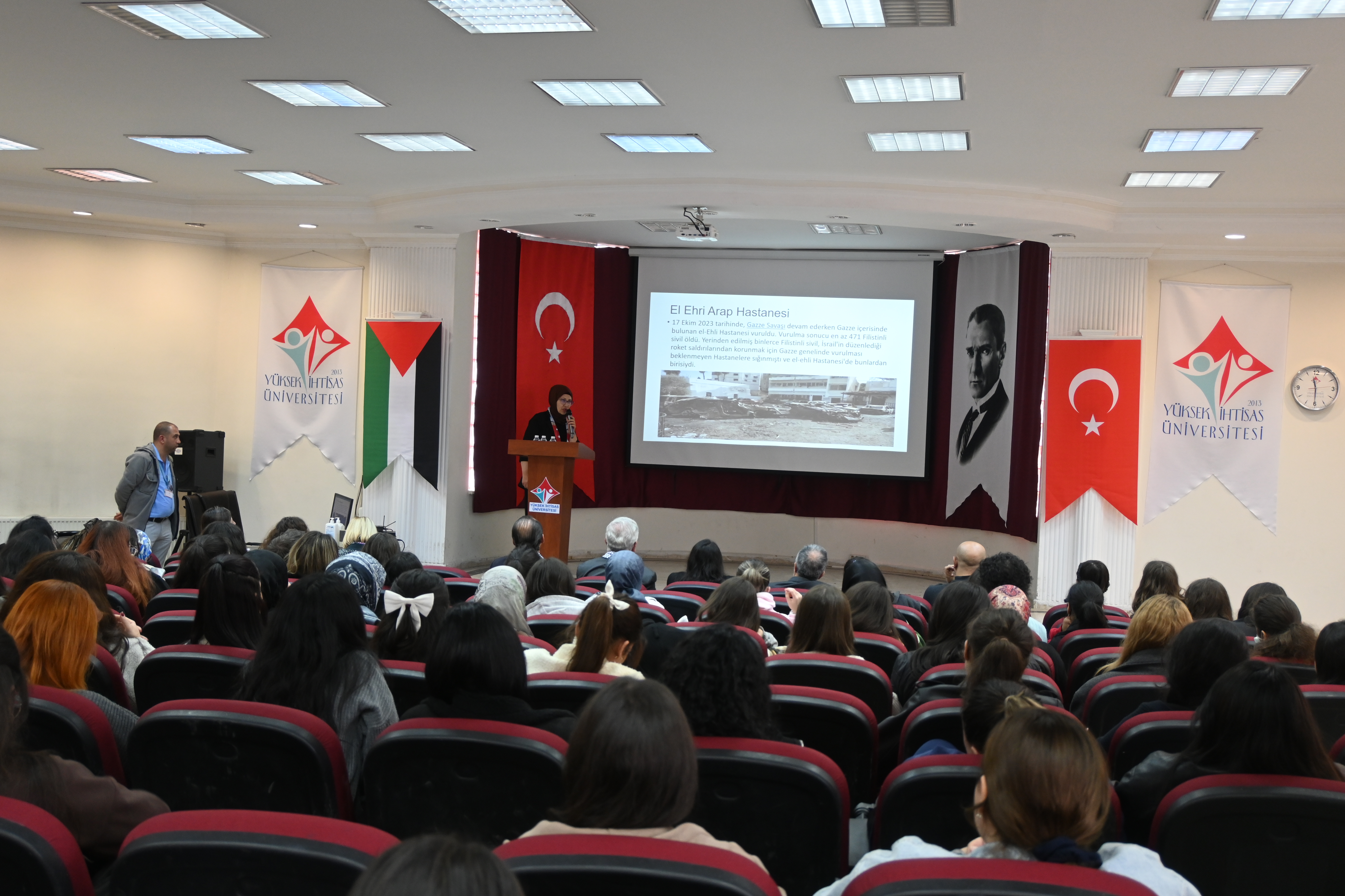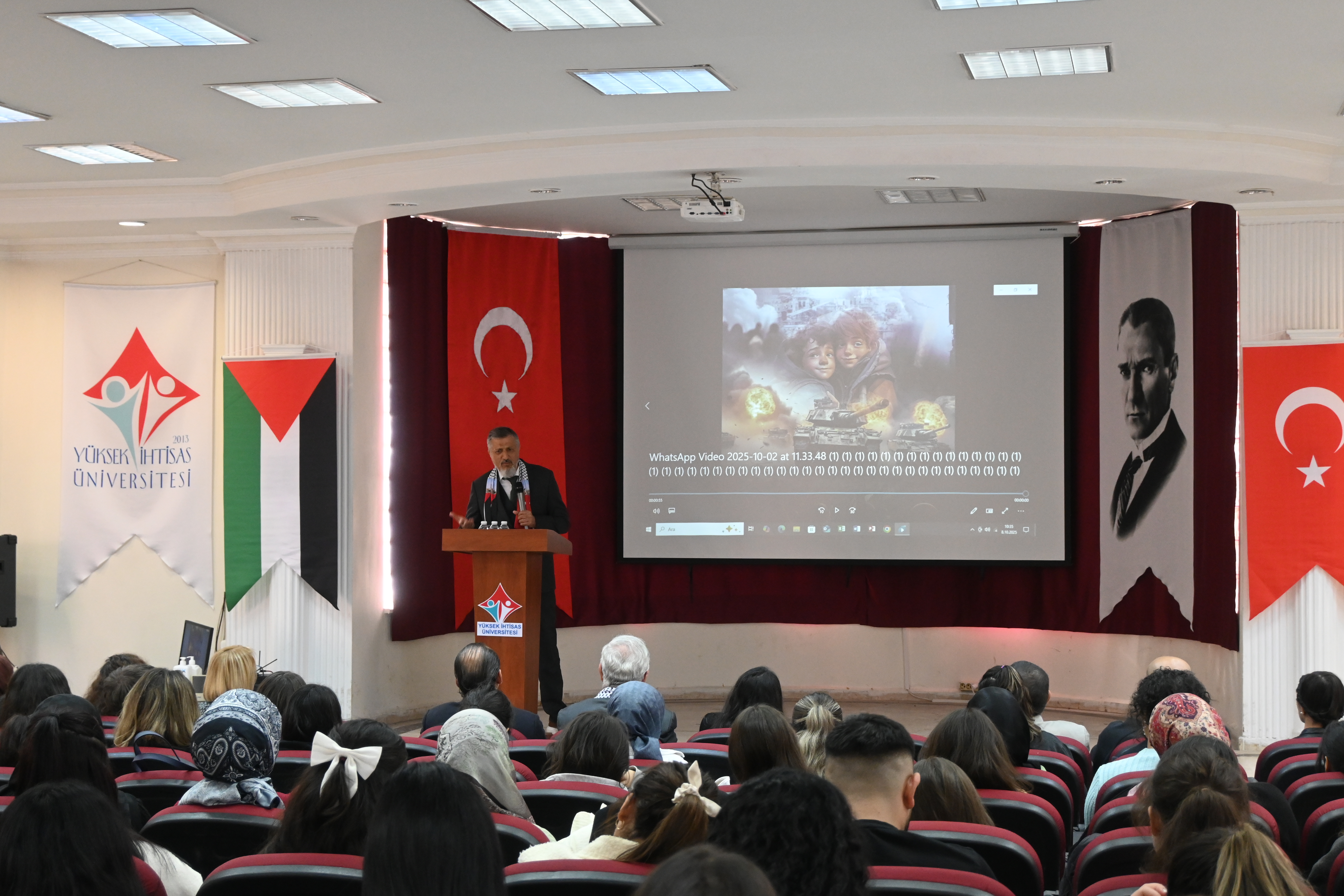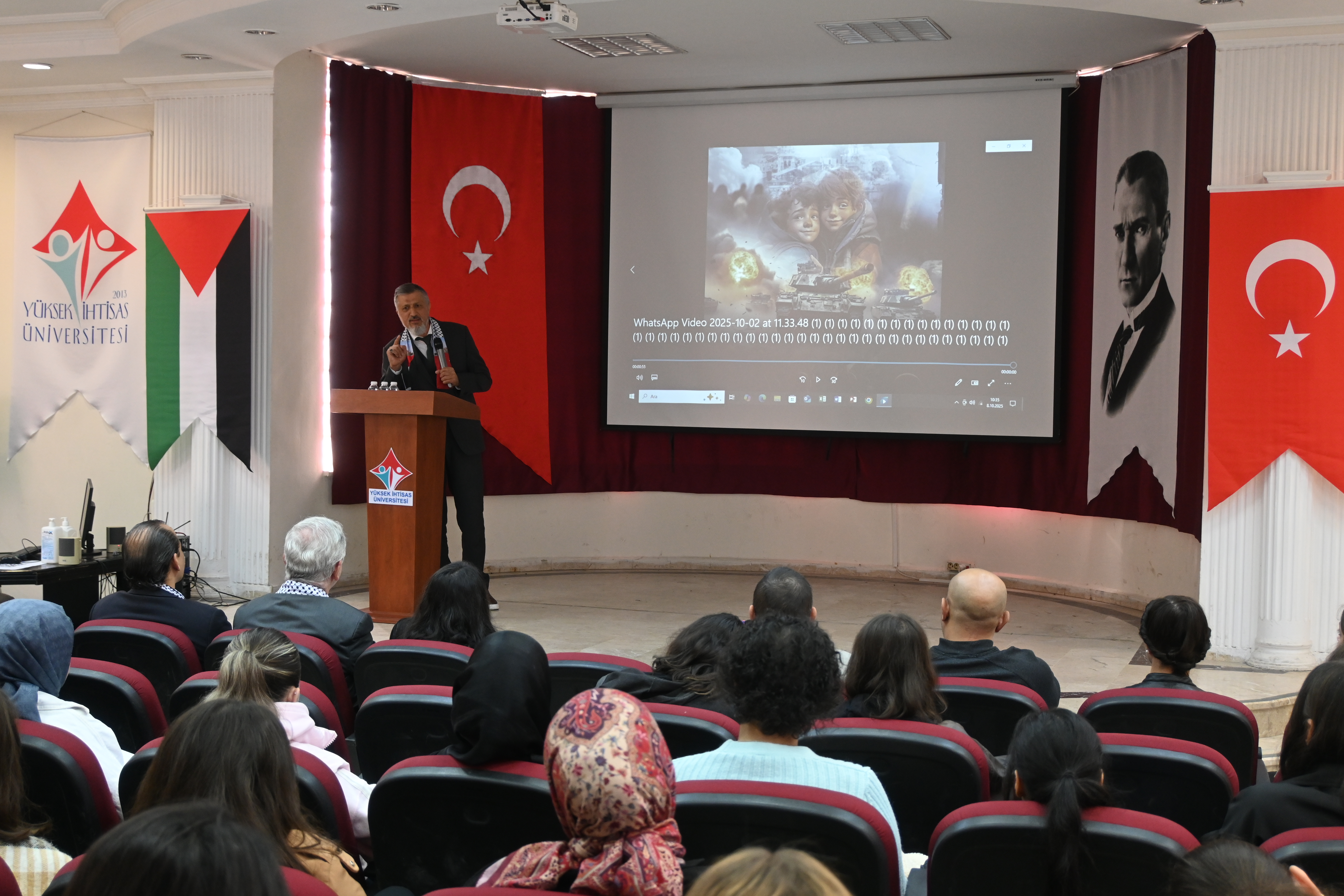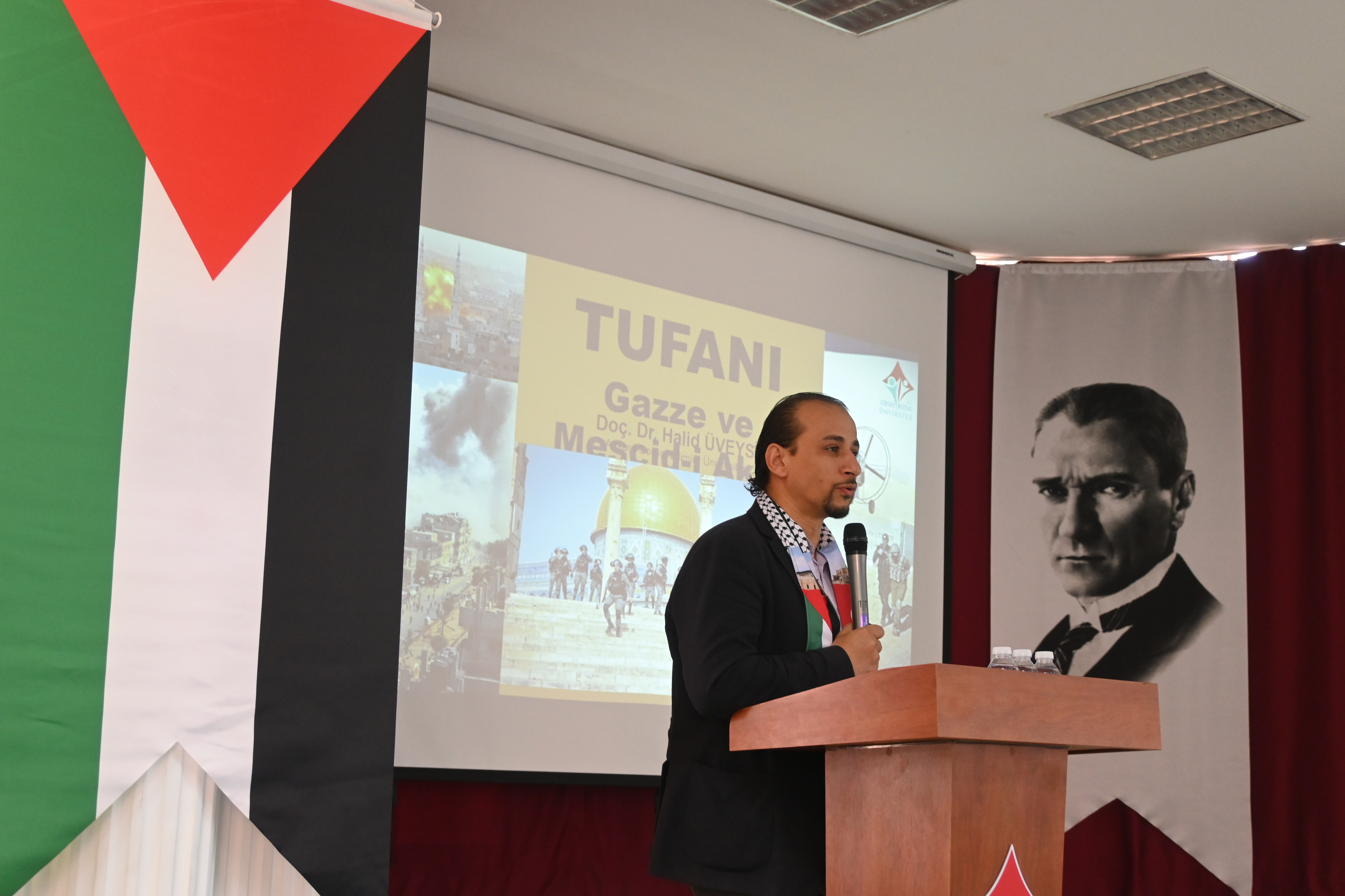 Program, Saygı Duruşu ve İstiklâl Marşı’nın okunmasıyla başladı. Ardından açılış konuşmasını Rektörümüz Prof. Dr. Kadirhan SUNGUROĞLU yaptı. “Filistin’in Adalet Çığlığı” adlı video gösteriminin ardından, Ankara Sosyal Bilimler Üniversitesi İlahiyat Fakültesi Öğretim Üyesi Doç. Dr. Halid ÜVEYSİ, “Aksa Tufanı: Gazze ve Mescid-i Aksa” başlıklı sunumuyla katılımcılara hitap etti.