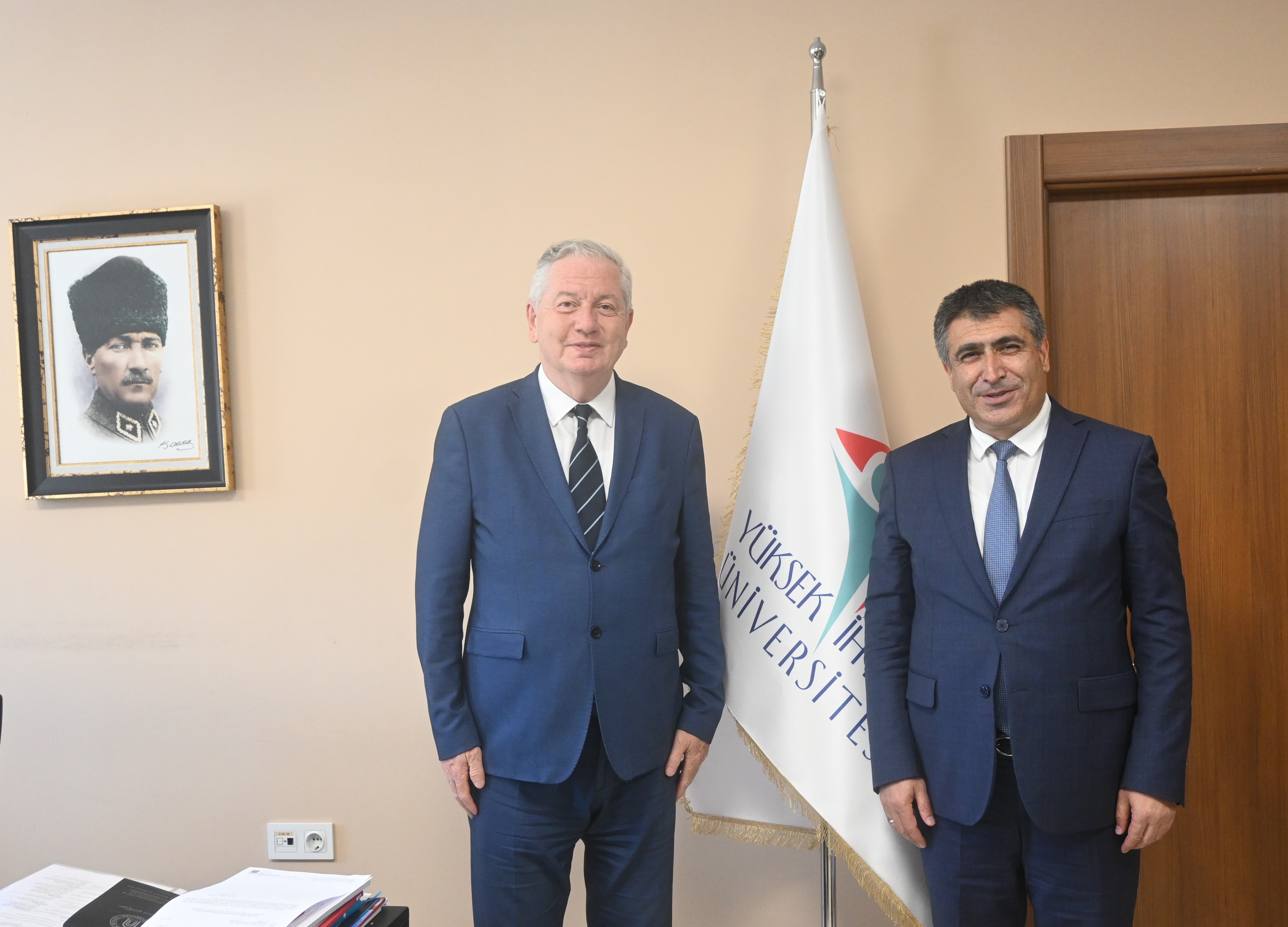 Nevşehir Hacı Bektaş Veli Üniversitesi Rektörü Prof. Dr. Semih AKTEKİN, Rektörümüz Prof. Dr. Kadirhan SUNGUROĞLU’ nu makamında ziyaret etti. Ziyaretin sonunda Prof. Dr. AKTEKİN, Rektörümüze hediye takdim etti.