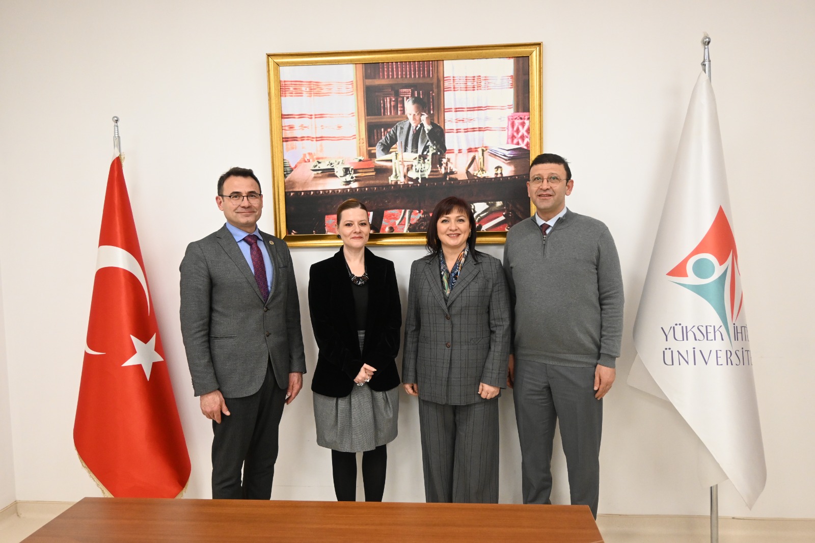 Ufuk Üniversitesi Rektörü Prof. Dr. Ahmet Hakan HALİLOĞLU, Hukuk Fakültesi Dekan Yardımcısı Doç. Dr. Fatma Elif ÇELİK ve Tıp Fakültesi Üroloji Ana Bilim Dalı’ndan Doç. Dr. Semih TANGAL, Rektörümüz Prof. Dr. Şebnem KAVAKLI’yı makamında ziyaret ettiler. Ziyaret kapsamında, Prof. Dr. Şebnem KAVAKLI’ya yeni görevinde başarı temennilerinde bulunuldu.