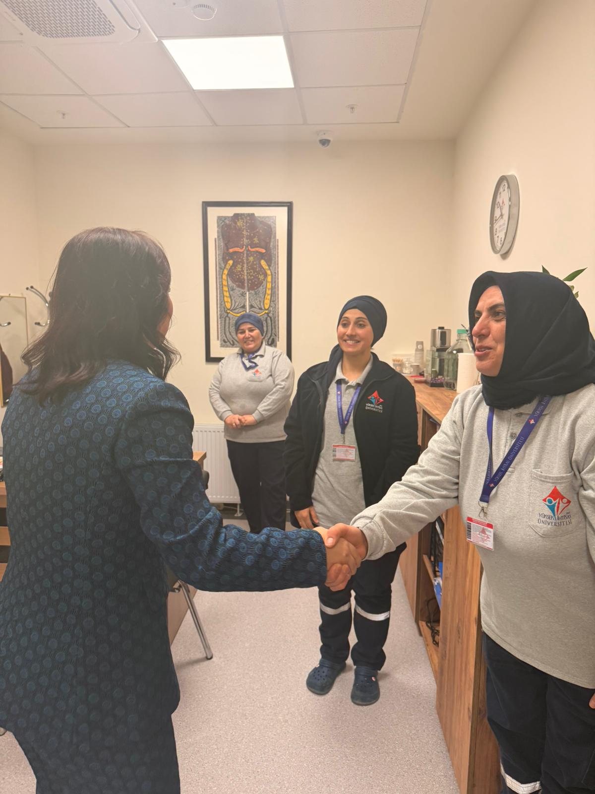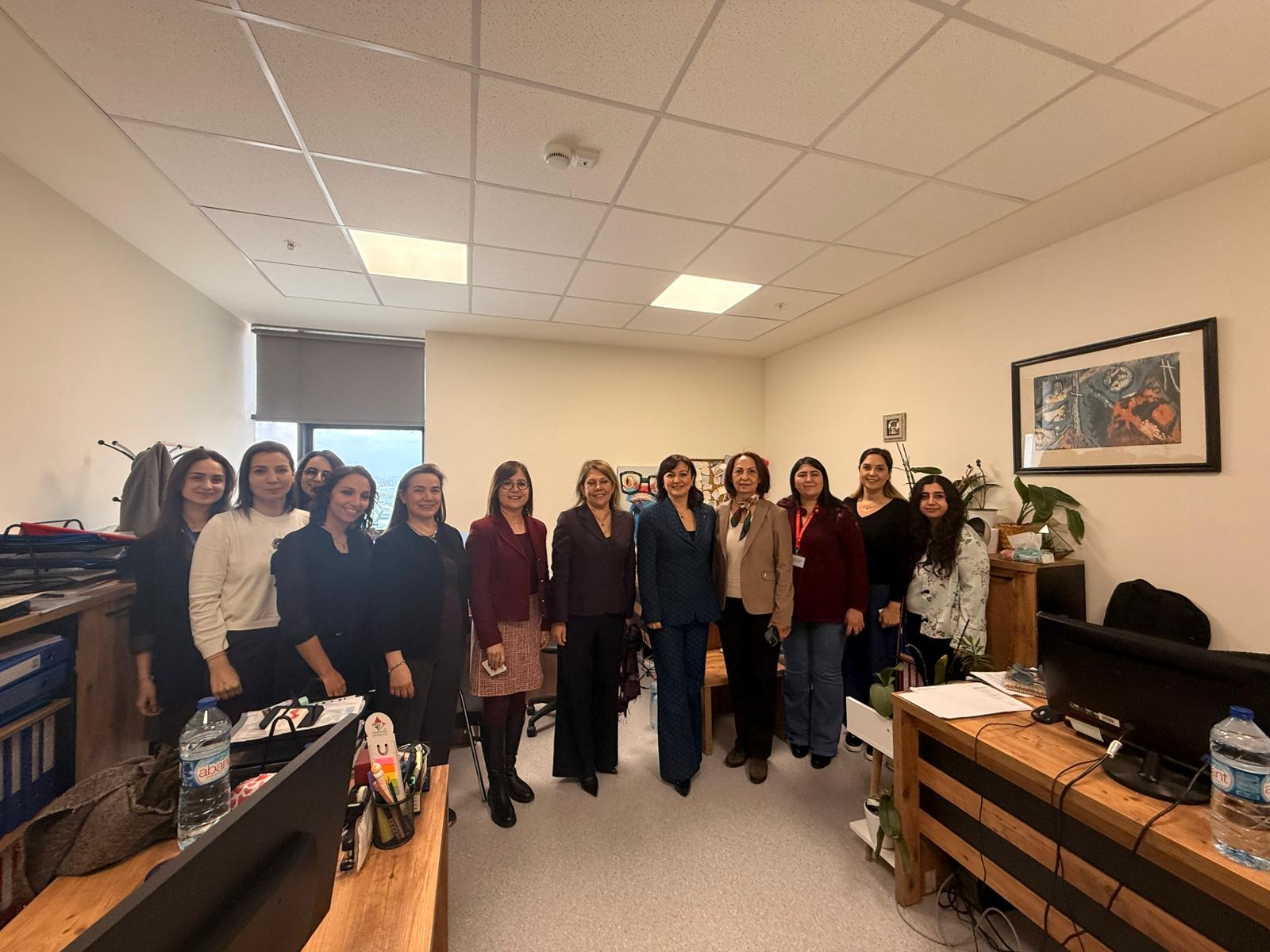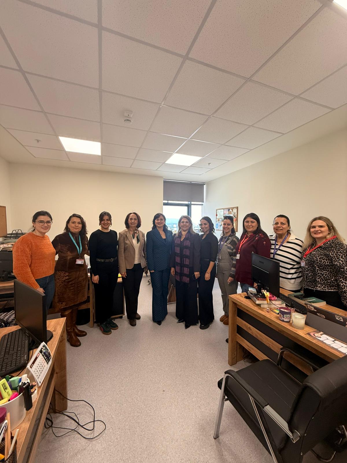 8 Mart Dünya Kadınlar Günü vesilesiyle Rektörümüz Prof. Dr. Şebnem KAVAKLI, Rektör Yardımcılarımız Prof. Dr. Gülay UZUN, Prof. Dr. Özgül KISA ve Sağlık Hizmetleri Meslek Yüksekokulu Müdürümüz Doç. Dr. Elif Hilal ŞEN ile birlikte Üniversitemizin tüm yerleşkelerini ziyaret ederek akademik ve idari kadın personelimizle bir araya geldi.