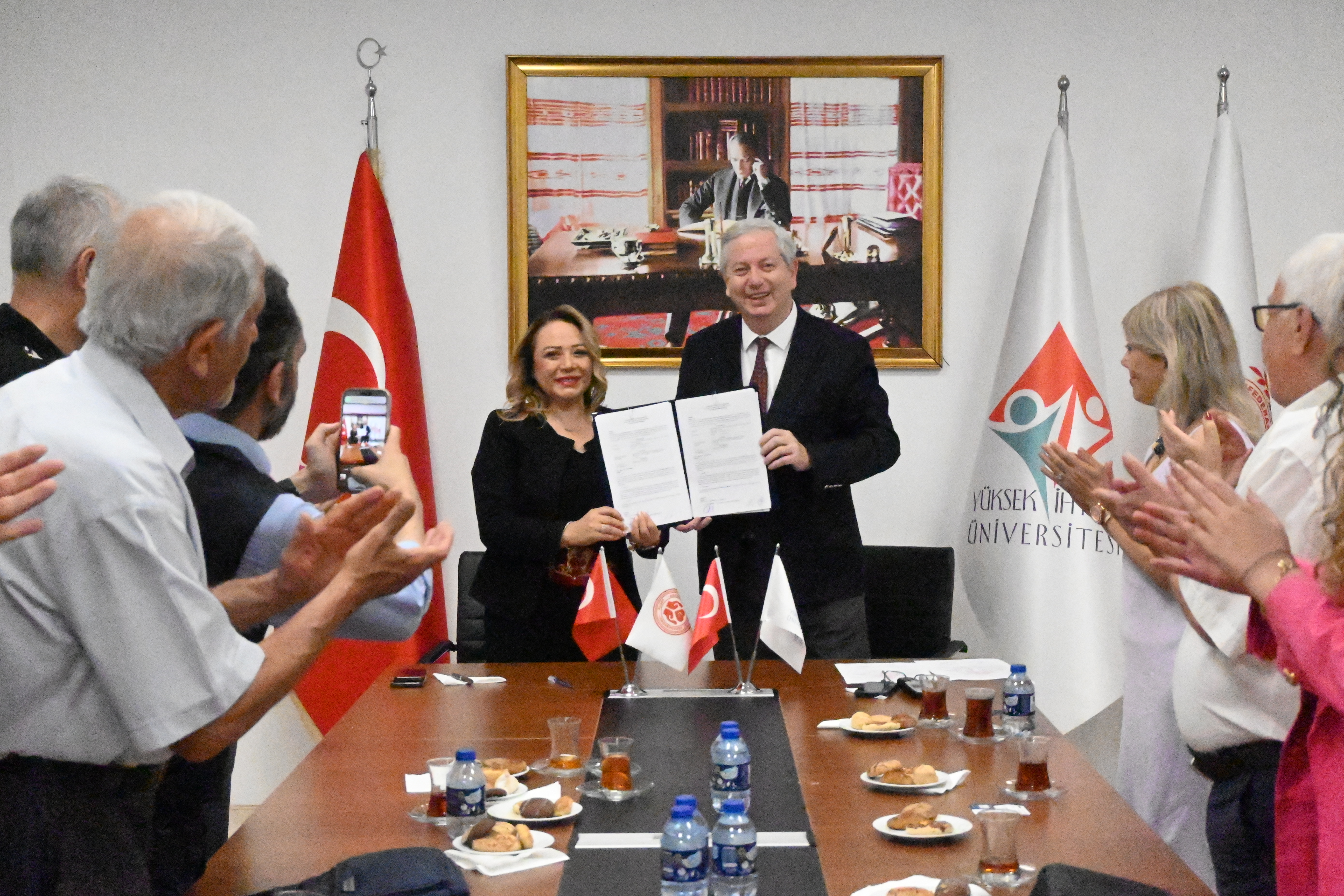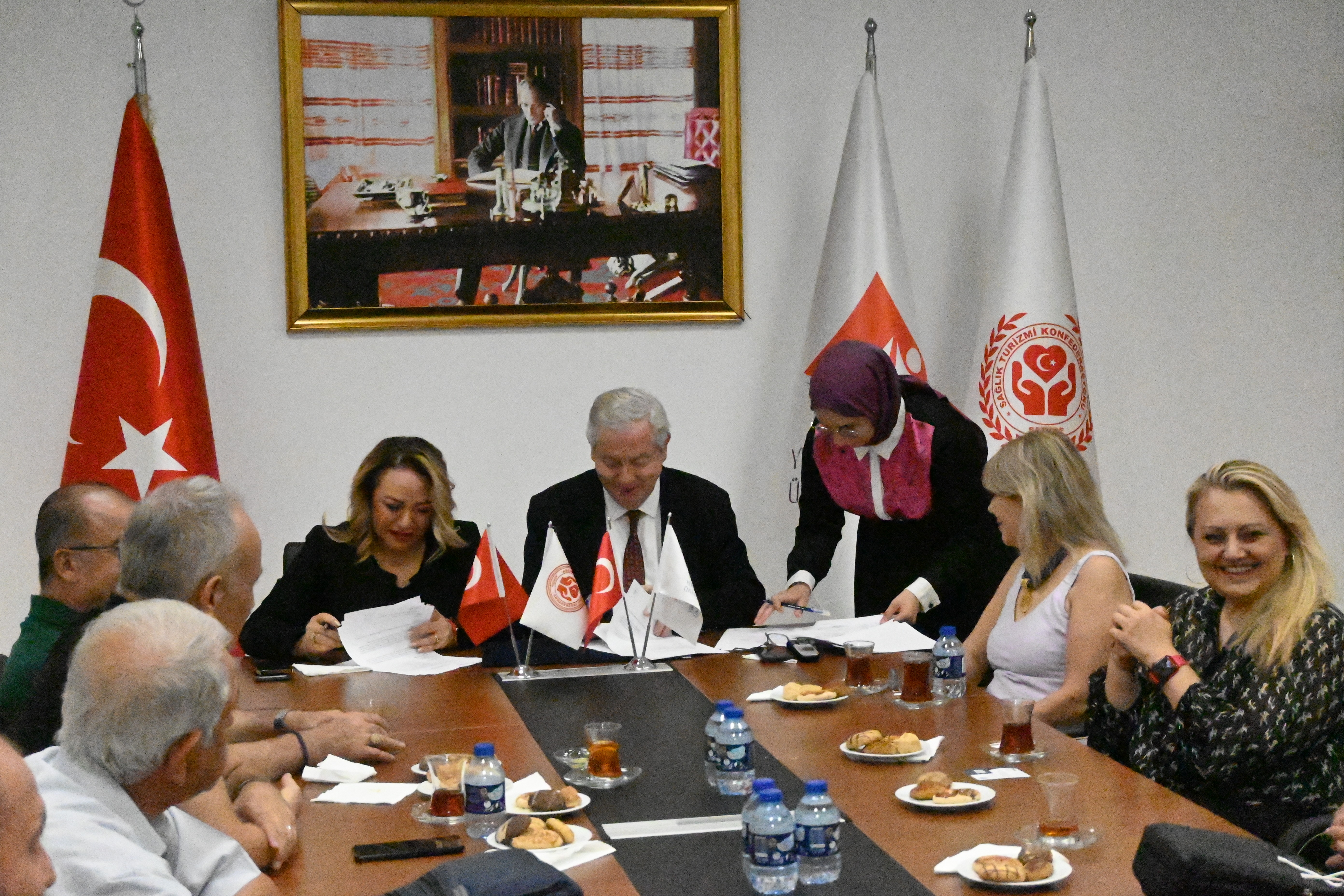 Üniversitemiz ev sahipliğinde gerçeklen törenle Rektörümüz Prof. Dr. Kadirhan SUNGUROĞLU ve Sağlık Turizmi Konfederasyonu (SATKOF) Genel Başkanı Prof. Dr. Aysun BAY tarafından imzalanan protokoller kapsamında; sürekli eğitim programları ve uluslararası öğrenci temini alanlarında ortak projeler yürütülmesi ve küresel ölçekte iş birliklerinin geliştirilmesi hedefleniyor.