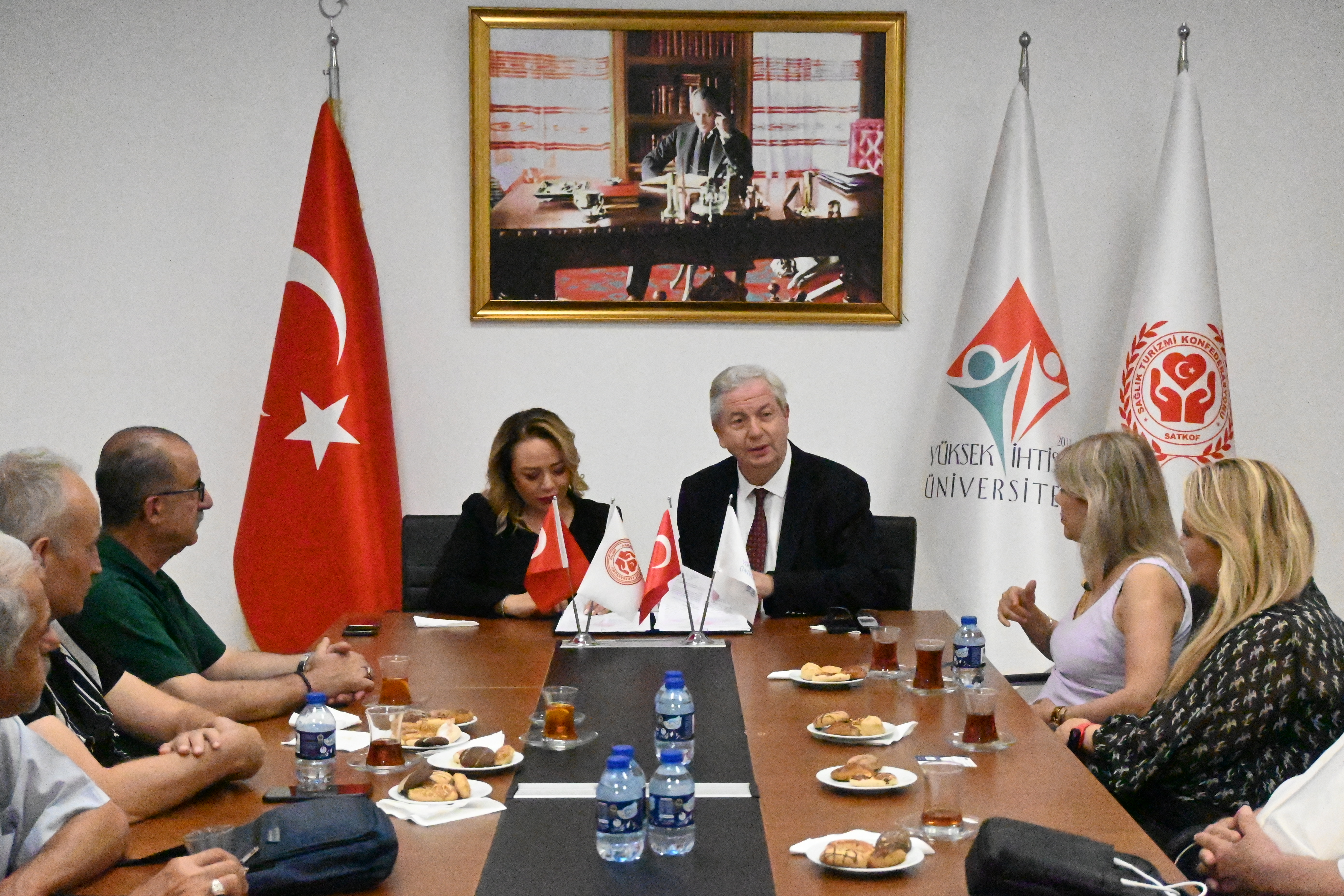 Yüksek İhtisas Üniversitesi ile Sağlık Turizmi Konfederasyonu (SATKOF) arasında, Üniversitemiz Sürekli Eğitim Uygulama ve Araştırma Merkezi faaliyetleri ile yabancı uyruklu öğrenci teminine yönelik iki ayrı protokol imzalandı.